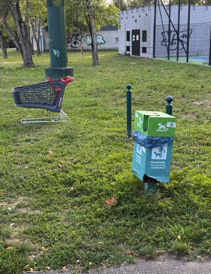 A Sibrik M utca Harmat utca és Mádi utca közötti szakaszán (a sétálóutcához közel) a sportpálya mellett egy eltulajdonított bevásárlókocsi éktelenkedik.