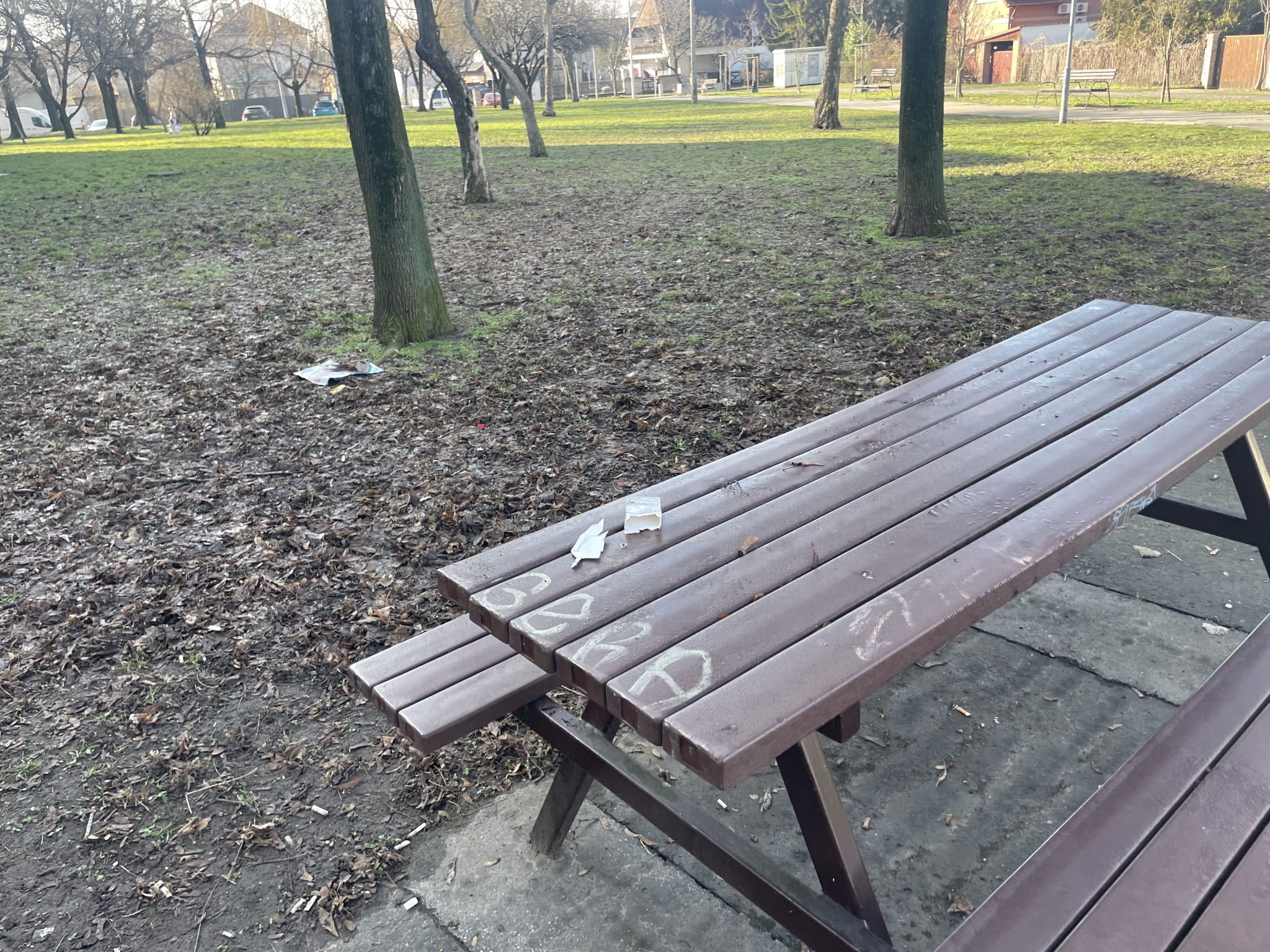 Jelölt helyen lévő 2 pad állandó "buli" helyszín, folyamatos a hangoskodás, szemetelés. Ez az ott lakókat nagyon zavarja. Célszerű lenne áttelepíteni ezeket a padokat a két 10 emeletes közé ahol nincs felette közvetlen lakás, és amúgy is ott a játszótér és kondi park, dühöngő.