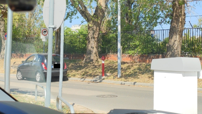 A Pékerdő utcában, a Lurdy ház parkolójának kijáratánál, az úttesten hetek óta áll egy lerobbant autó. A parkolóból való kihajtást is nehezíti.