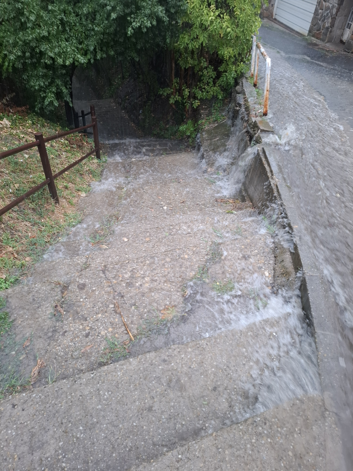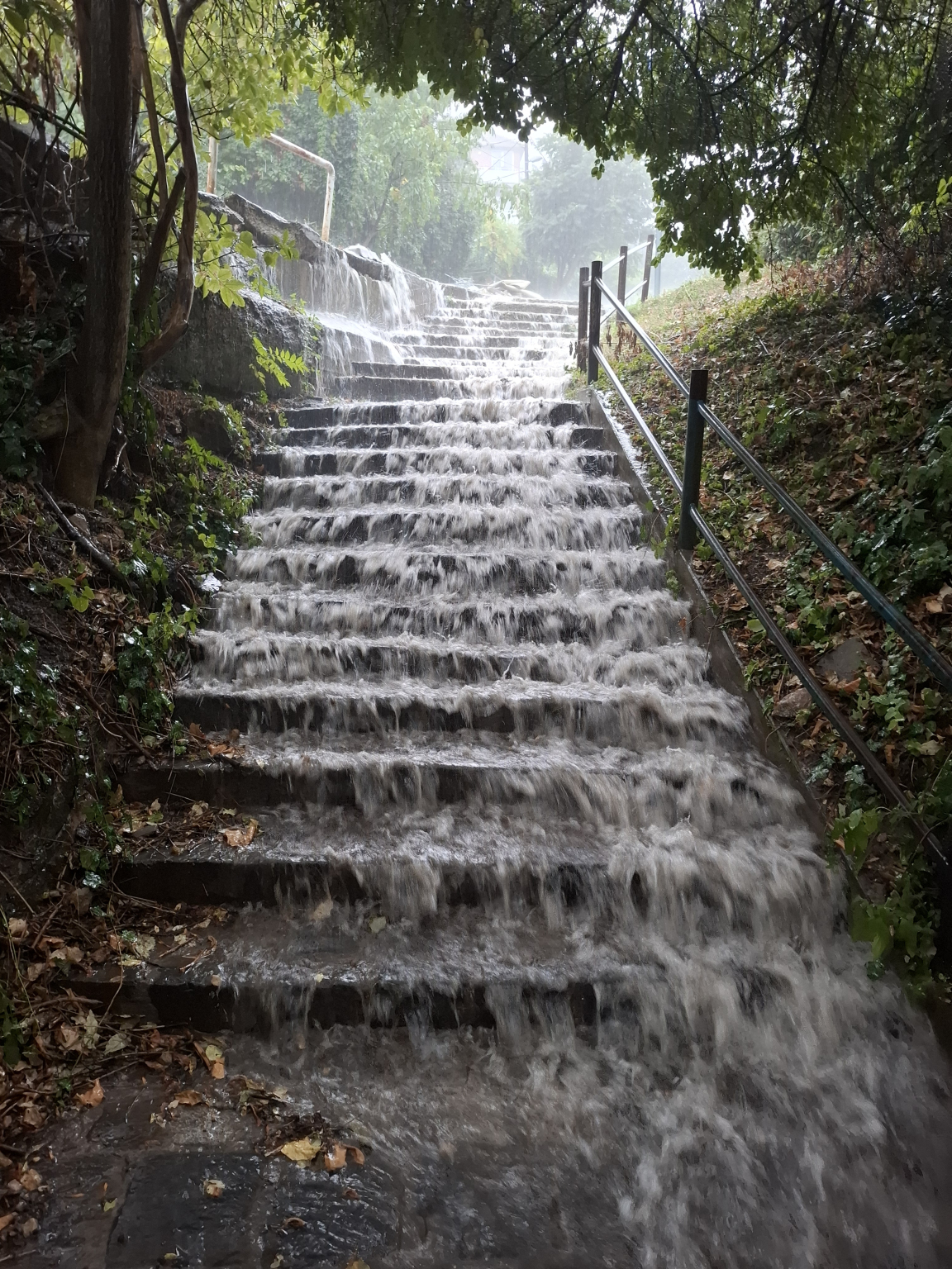 A lépcsőn kialakuló helyzetet az alábbi fotó mutatja, amely a augusztus végi eső alatt készült: