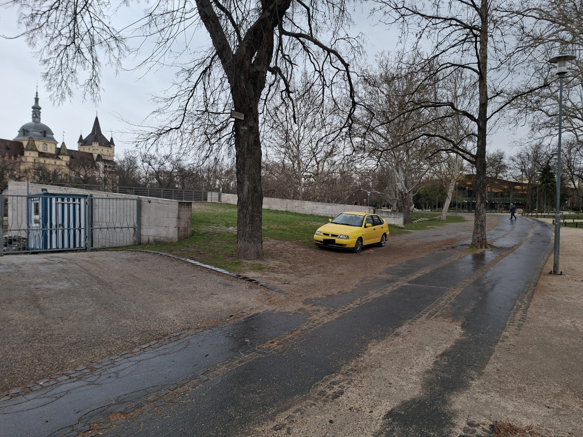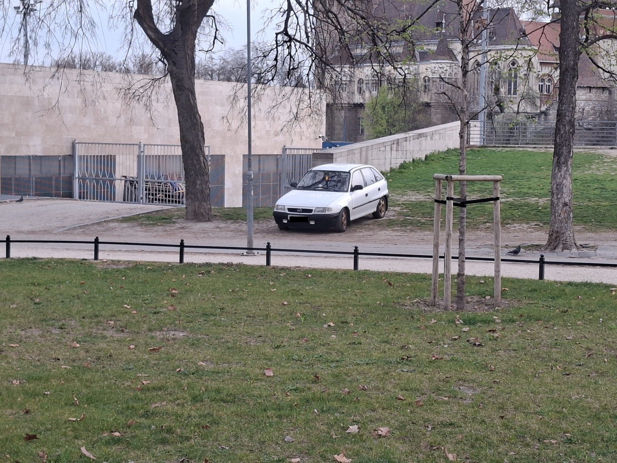 A Városligetben óriási a forgalom, aminek csak kis része igazolható, szabályos, nagy része illegális forgalom. Sajnos még azok az autók is, amelyek jogosan hajtanak be, még azok is hozzájárulnak a Liget pusztításához teljesen feleslegesen. A képen látható eset elég tipikus: feleselegen parkol a járgány a zöldterületen, maradnia kellett volna az úttesten, ha már arra volt dolga. Teljesen gazdátlan a Liget, senki nem törődik az elképesztő forgalommal. Persze mit várjunk az átlagos fehér furgonostól, ha még maguk a közteresek is részt vesznek a pusztításban, felelsegesen a murvás padkára parkolva, járó motorral mobiloznak az autójukban télen-nyáron, ahelyett, hogy tennék a dolgukat.