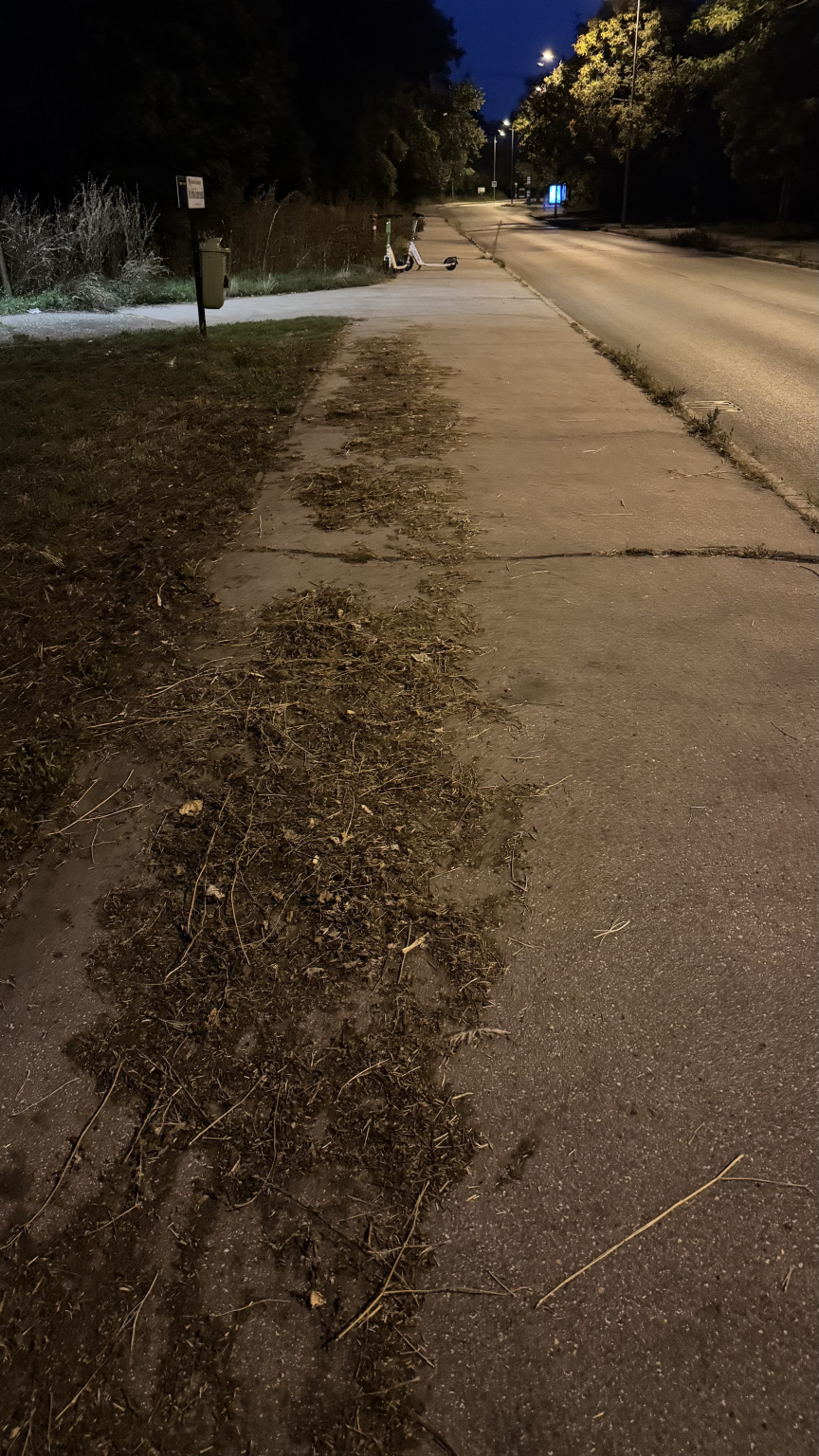 Kérem legyenek szívesek a padkánál a zöldet levágni, plusz a levágott füvet is legyenek szívesek összeszedni a járdáról! Köszönöm szépen!
