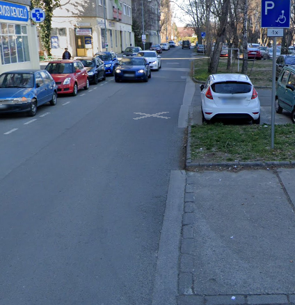 A konkrét helyszín lakó-pihenő övezet része, ahol minden kereszteződés egyenrangú és egyébként csak 20 km/órás maximális sebességgel szabad ott közlekedni. A parkolással kapcsolatban azt tudjuk mondani, hogy a területen igen nagy a parkolási igény, lakóterület lévén. Mivel fizető övezet van bevezetve, ezért a parkolóhelyek egyenként ki vannak jelölve. Véleményünk szerint az összes csomópont hasonló geometriájú és beláthatóságú, így parkolóhelyek megszüntetését rövid távon nem tervezzük.”