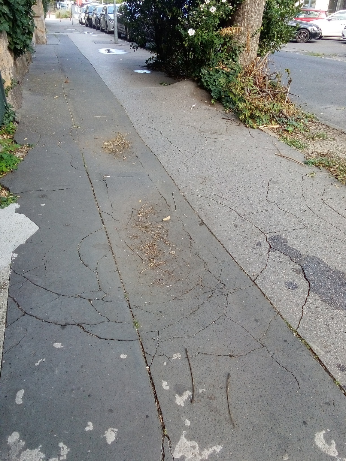 A Bocskai út 80 szám előtti járdarész deformált meg van repedve és fel is van púposodva.