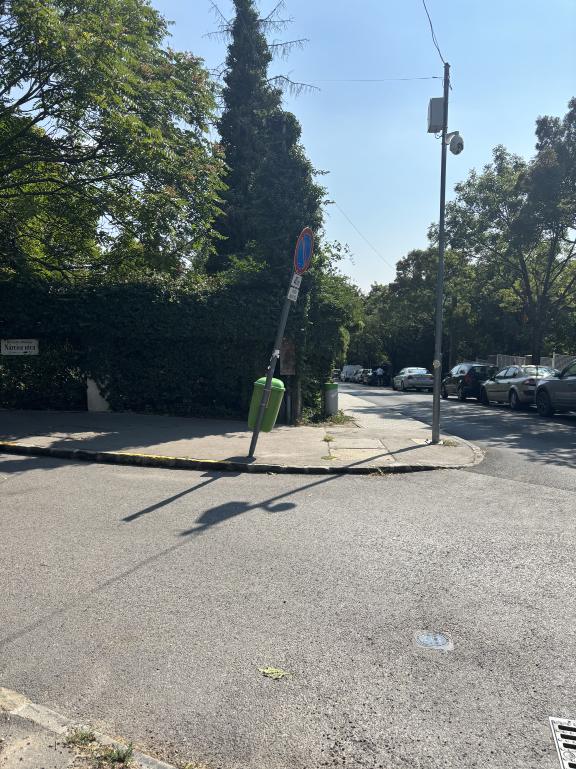Nárcisz és Pagony utca sarkán kidőlni készül a jelzőtábla.