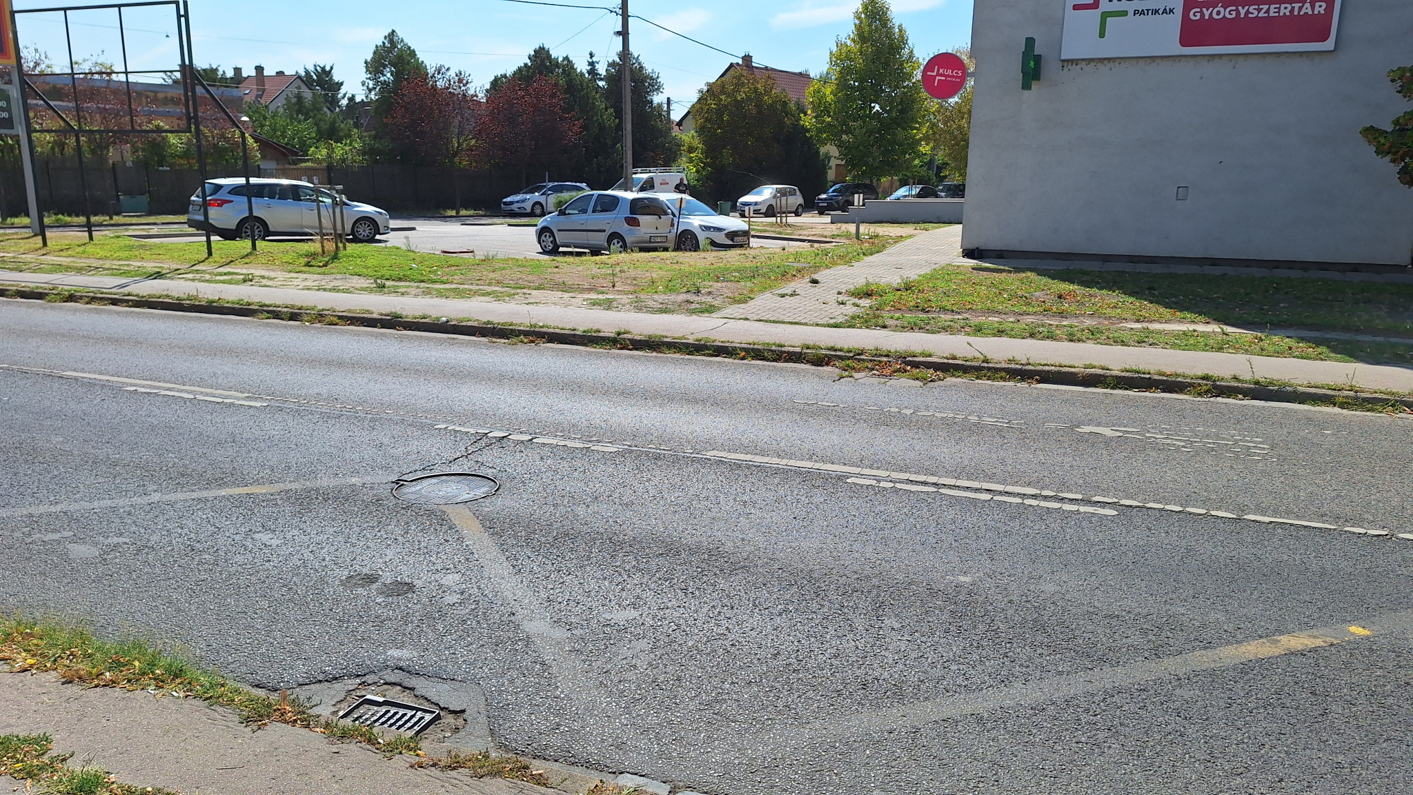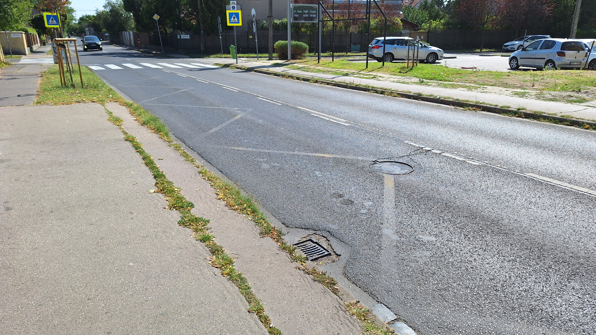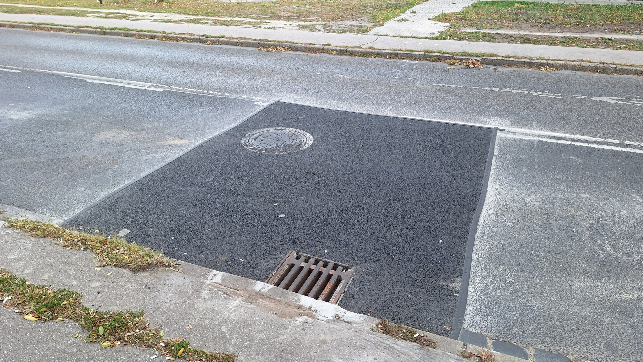 De az úttest túloldalán lévő rács is gazos, el van tömődve.