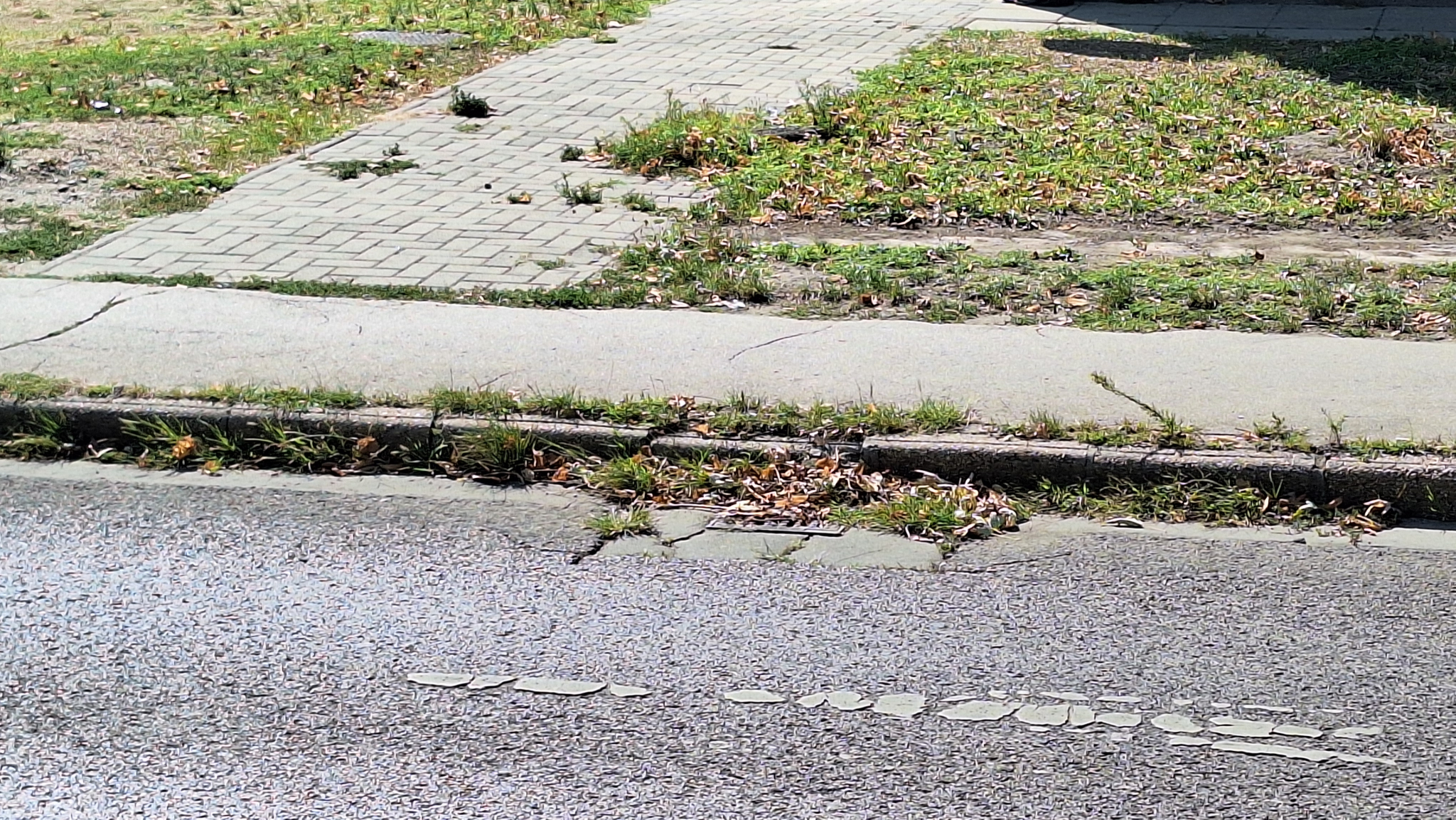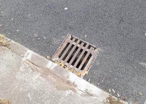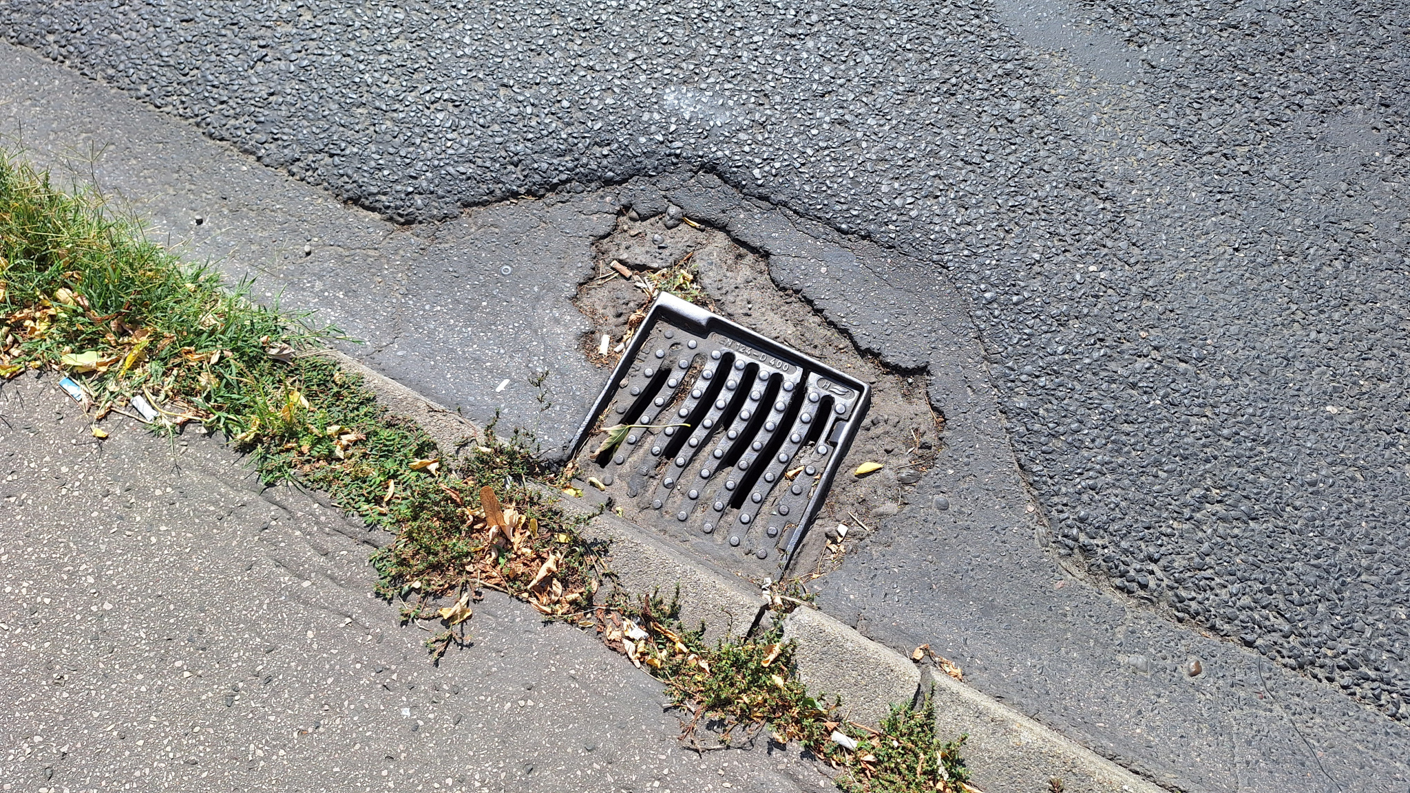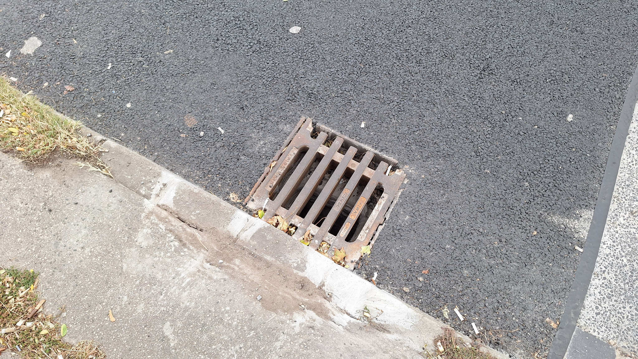 De az úttest túloldalán lévő rács is gazos, el van tömődve.