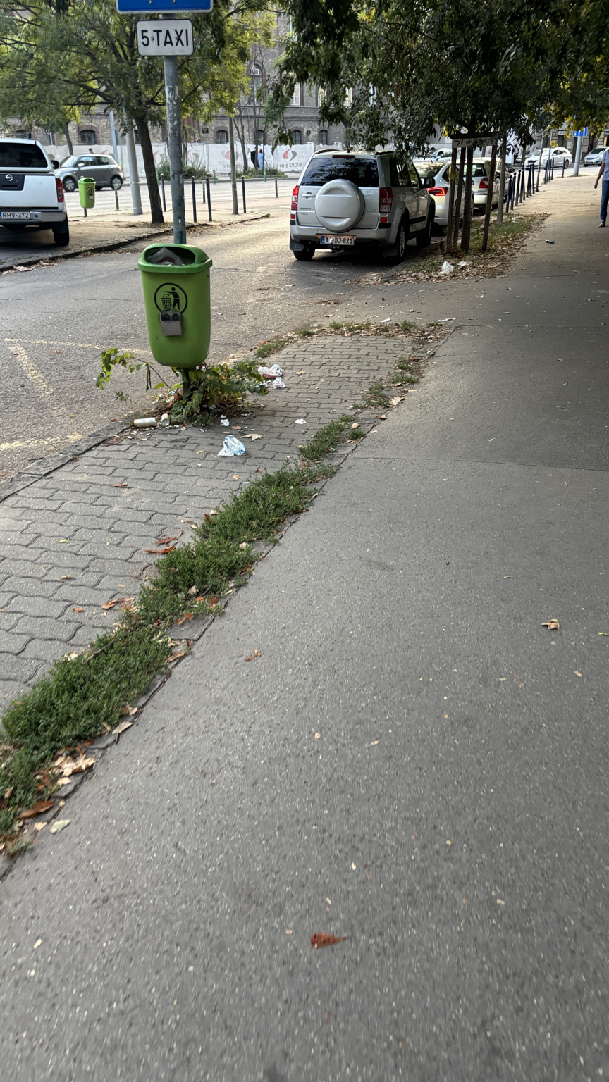A Hugonnai Vilma térnél a járda mentén rengeteg a szemét és emberi ürülékszag érződik napok óta. Szemmel láthatóan az eldobalt zsebkendőknek is ehhez van köze.