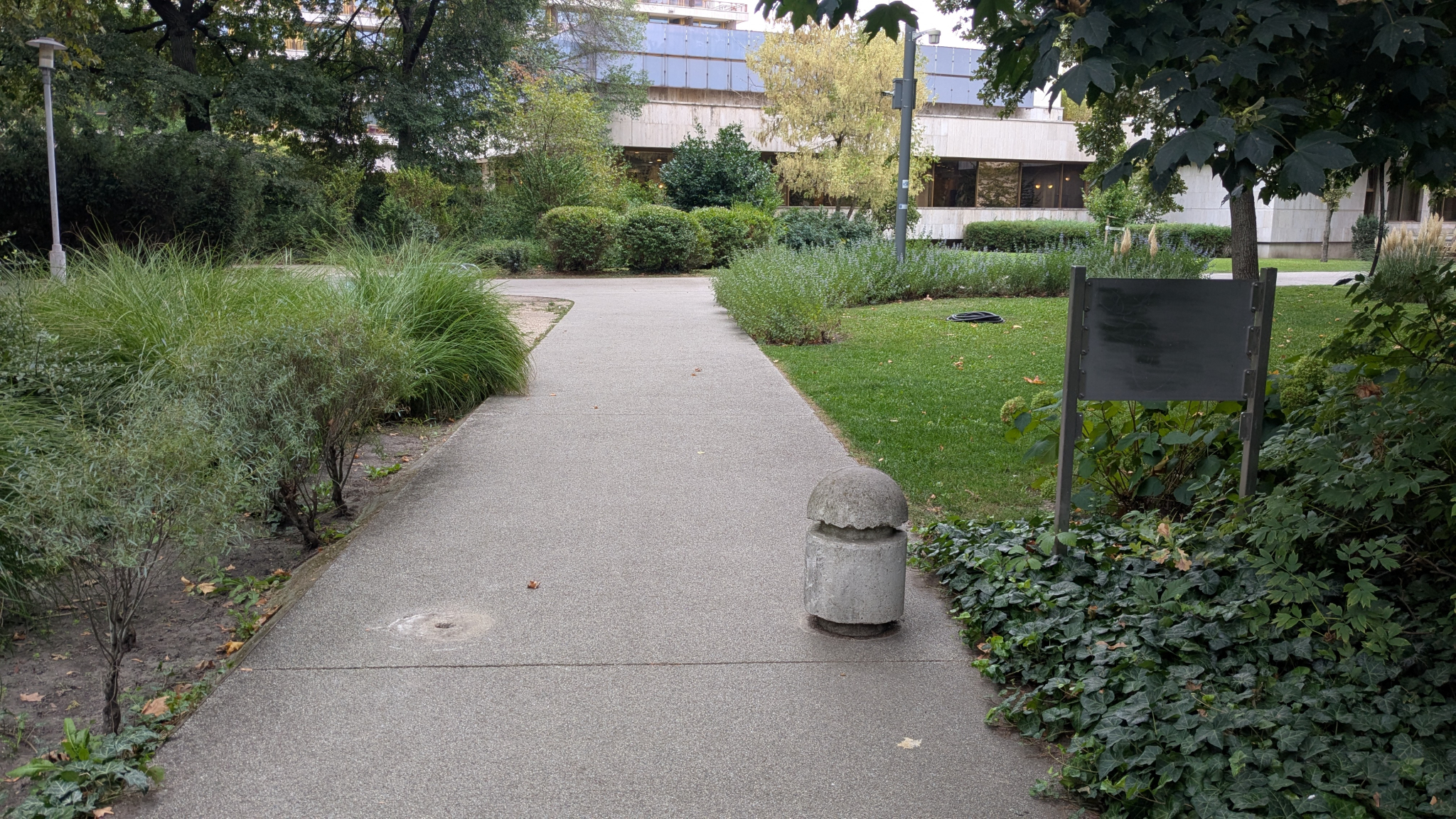 A Margitszigeten a halas tóhoz vezető betonozott úton ( Thermál Szálló oldalaval szemben, ahol régen publikus mosdók is működtek, a kishidra vezető útszakaszon) elhelyezett 2 út torlaszbol az egyik hiányzik, a kertbe félre van lökve. Helyére kellene tenni, lebetonozni.