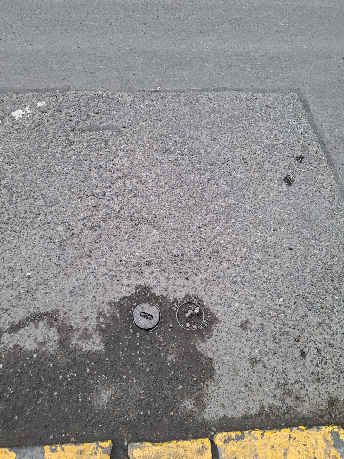 A 37 ház előtt a vízelzáró fedele hiányzik és a csonk kilóg a földből, balesetveszélyes.
