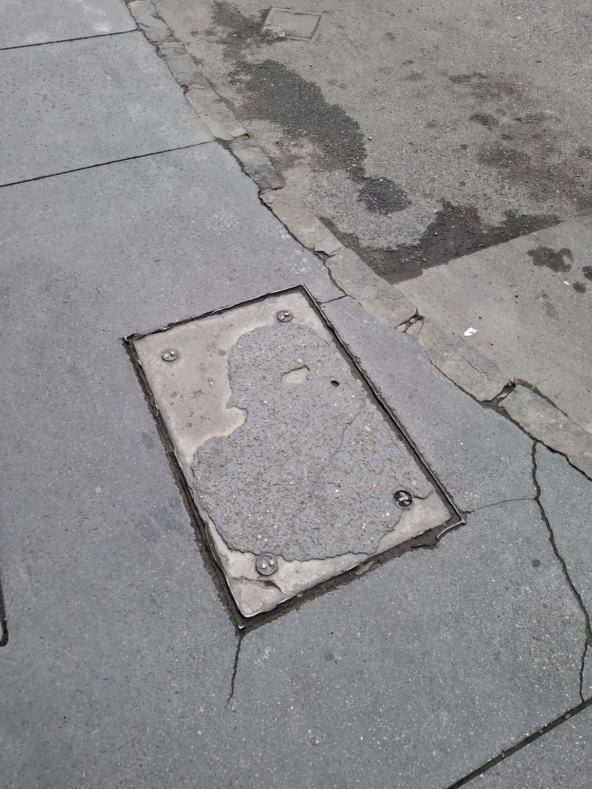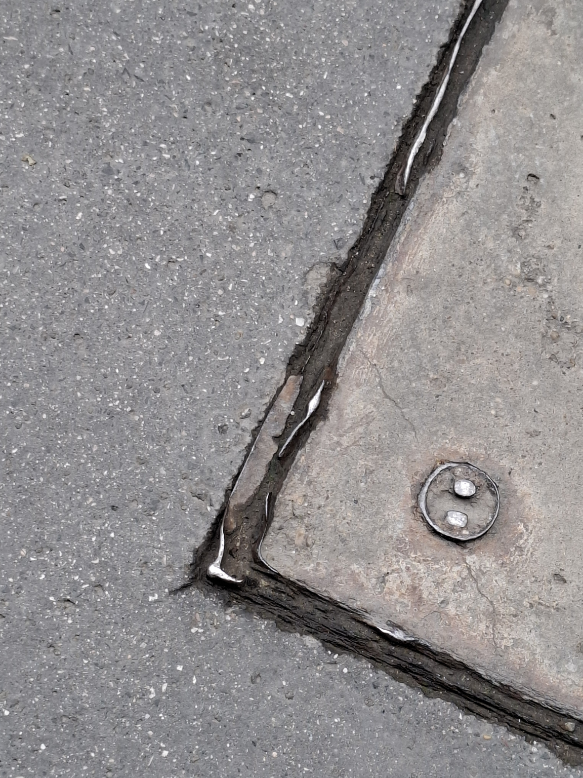 Veszélyes, hegyes fém van a rossz állapotú feslap körül.