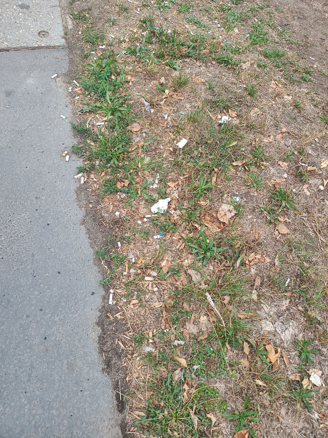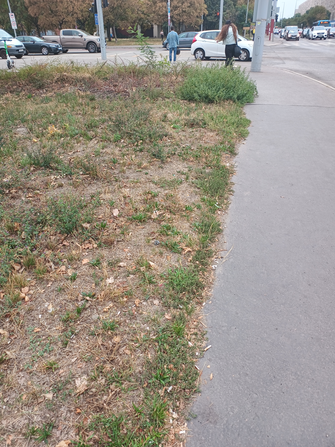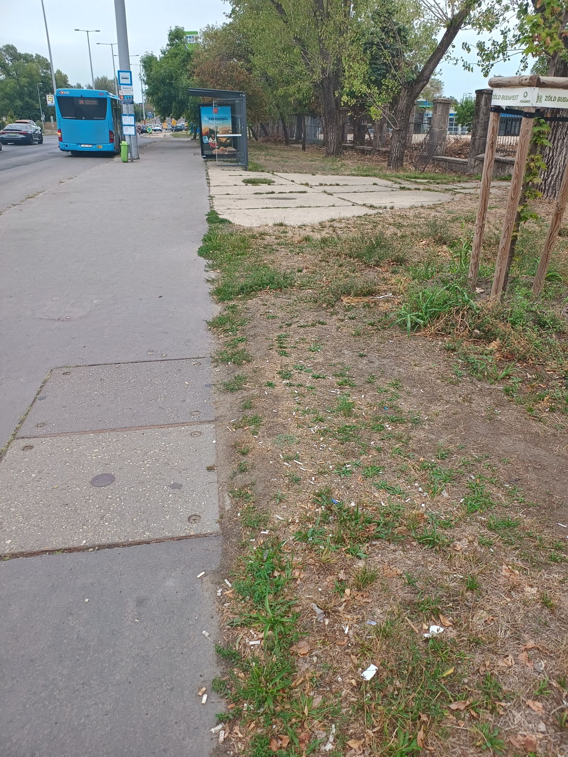 Bogdáni út - Szentendrei út kereszteződésében az északi irányú 34/106-os buszmegálló környezetében áll a cigarettacsikk.
