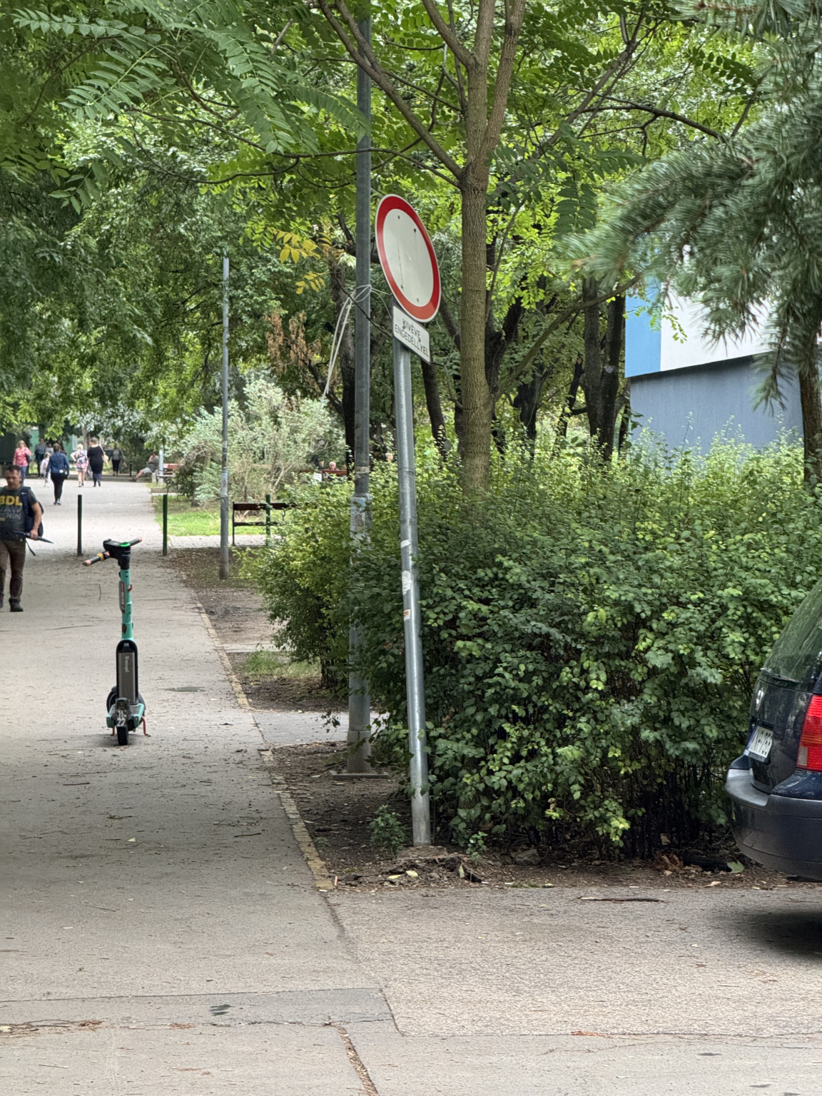 Budapesten az újvárosiak park 1 számnál a pöttöm park óvoda előtt folyamatosan bejönnek az autósok az előlük táblával lezárt területre és mivel a ezt tiltó tábla félig ki van dőlve nehezen is vehető észre. Illetve reggel és a délutáni gyerekekkel való gyalogos közlekedés folyamatosan veszélynek vannak kitéve az emberek a betévedő forgalom miatt ezért szükség lenne további esetleg oszlopos lezárásra. Mivel iskolai is van itt nagyon sok gyerekes család közlekedik.