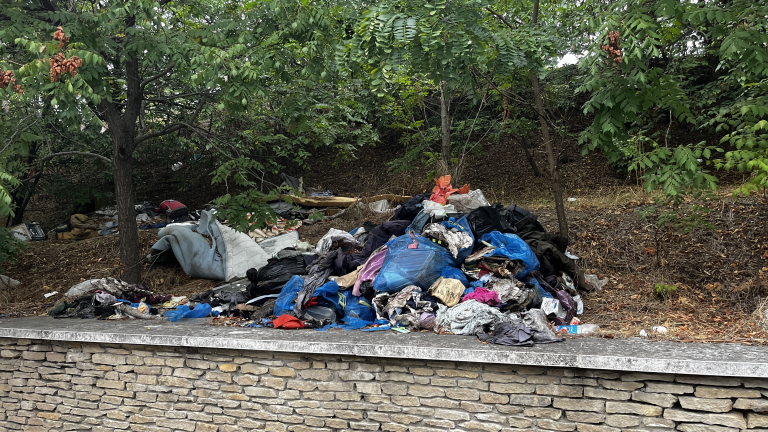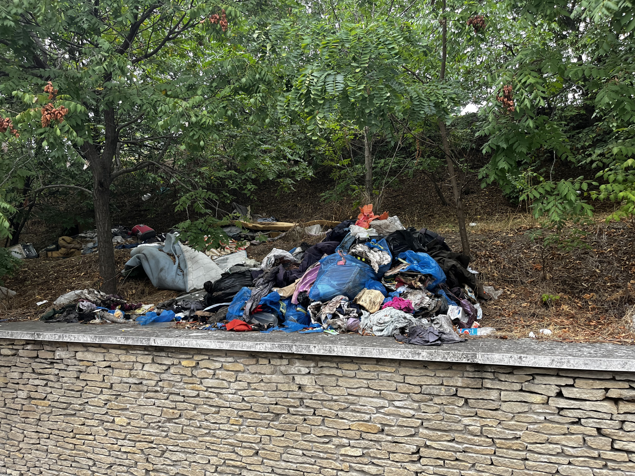 Hosszú idő óta halmozódó szemétkupac a 1138 Budapest, Váci út 201 szám alatt található Lidl mögötti vasúti töltésen.