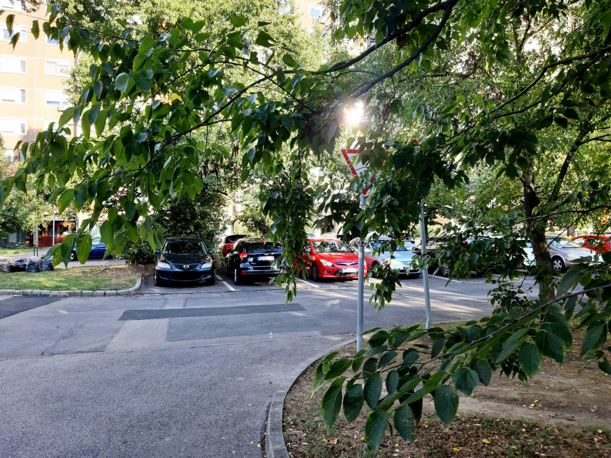 „A második képen látható 'elsőbbségadás kötelező' és 'megállni tilos' táblákat még mindig ugyanúgy takarja a lomb, a bejelentés megoldatlan.”