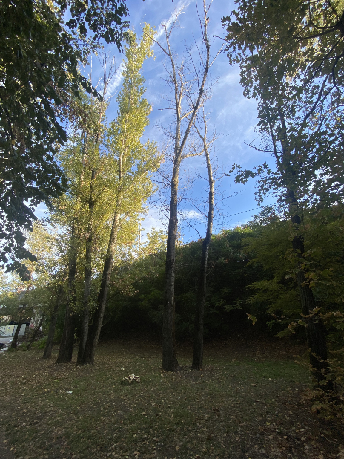 Kérem vágják ki a 2 kiszáradt nyárfát és ültessenek új szárazságtűrő facsemetéket.
