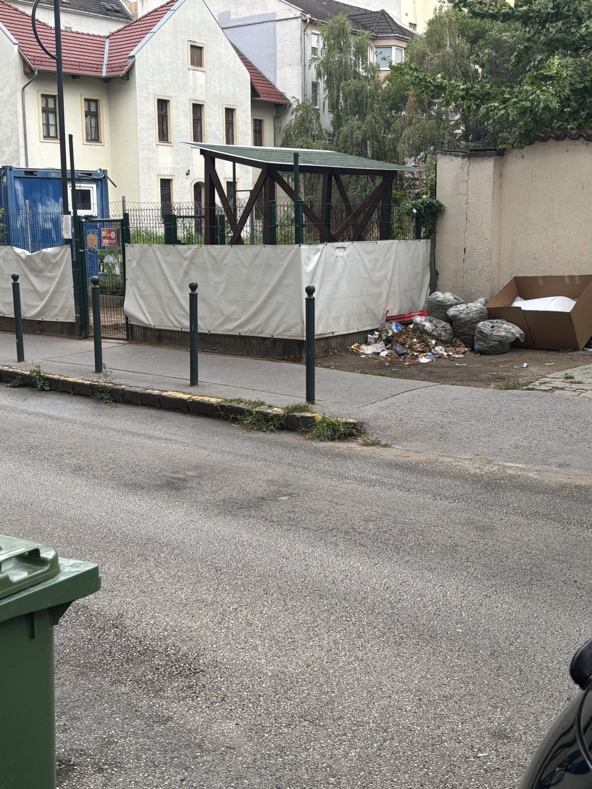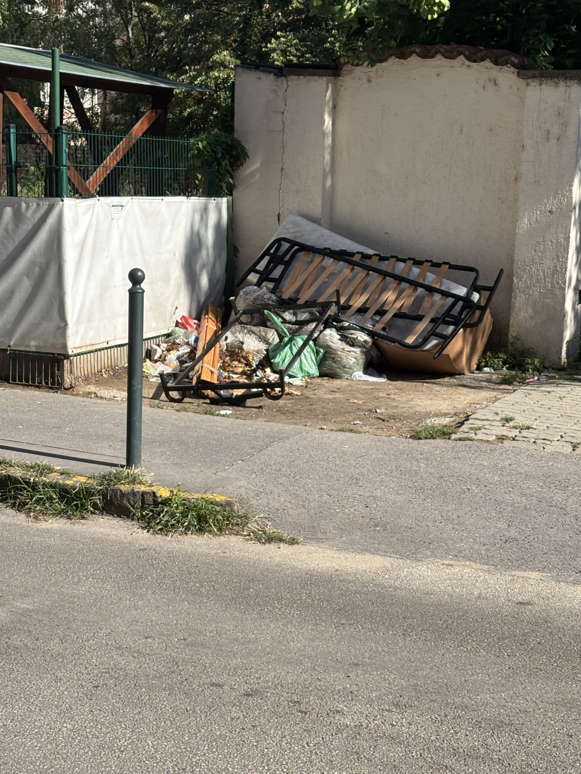 Balázs Béla utca, kutyafuttató mellett folyamatos szemétlerakás.