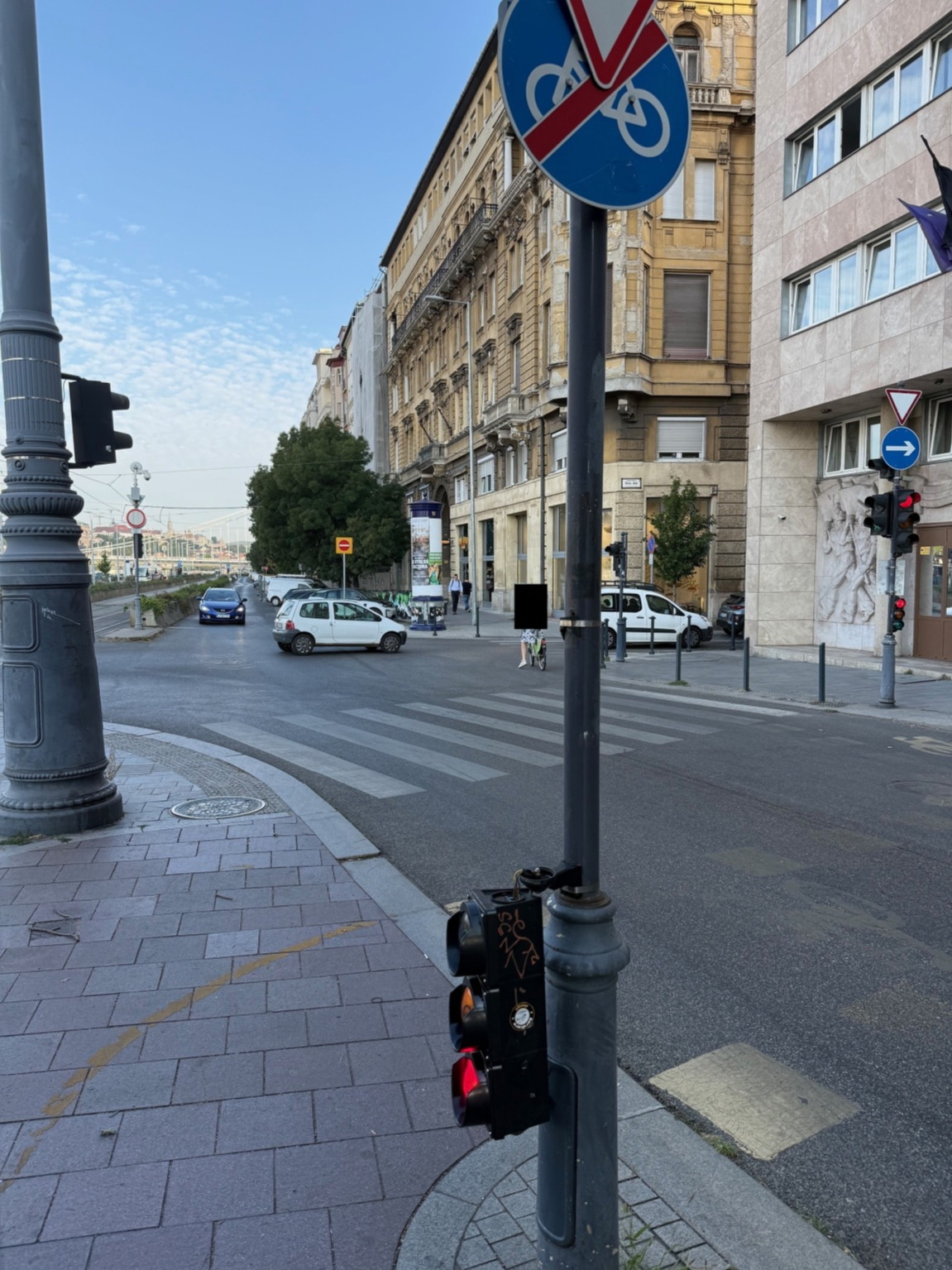 Az V. kerületben a Belgárd rakpart-Havas utca sarkán a Szabadság-híd felől érkező kerekpárutón a kerékpáros jelzőlámpát letörték. Szabadon lóg úgy, hogy a kilógó kábelek tartják.