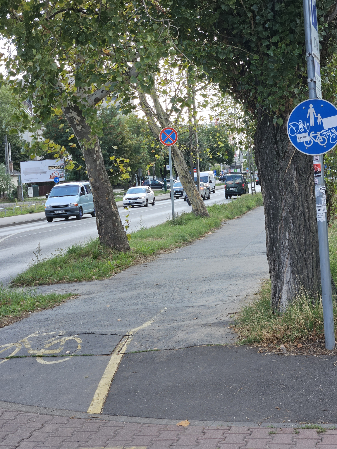 A fák gyökere felnyomta az aszfaltot a kerékpársávon, több éve balesetveszélyes biciklivel! Legalább hívják fel a figyelmet rá festéssel.