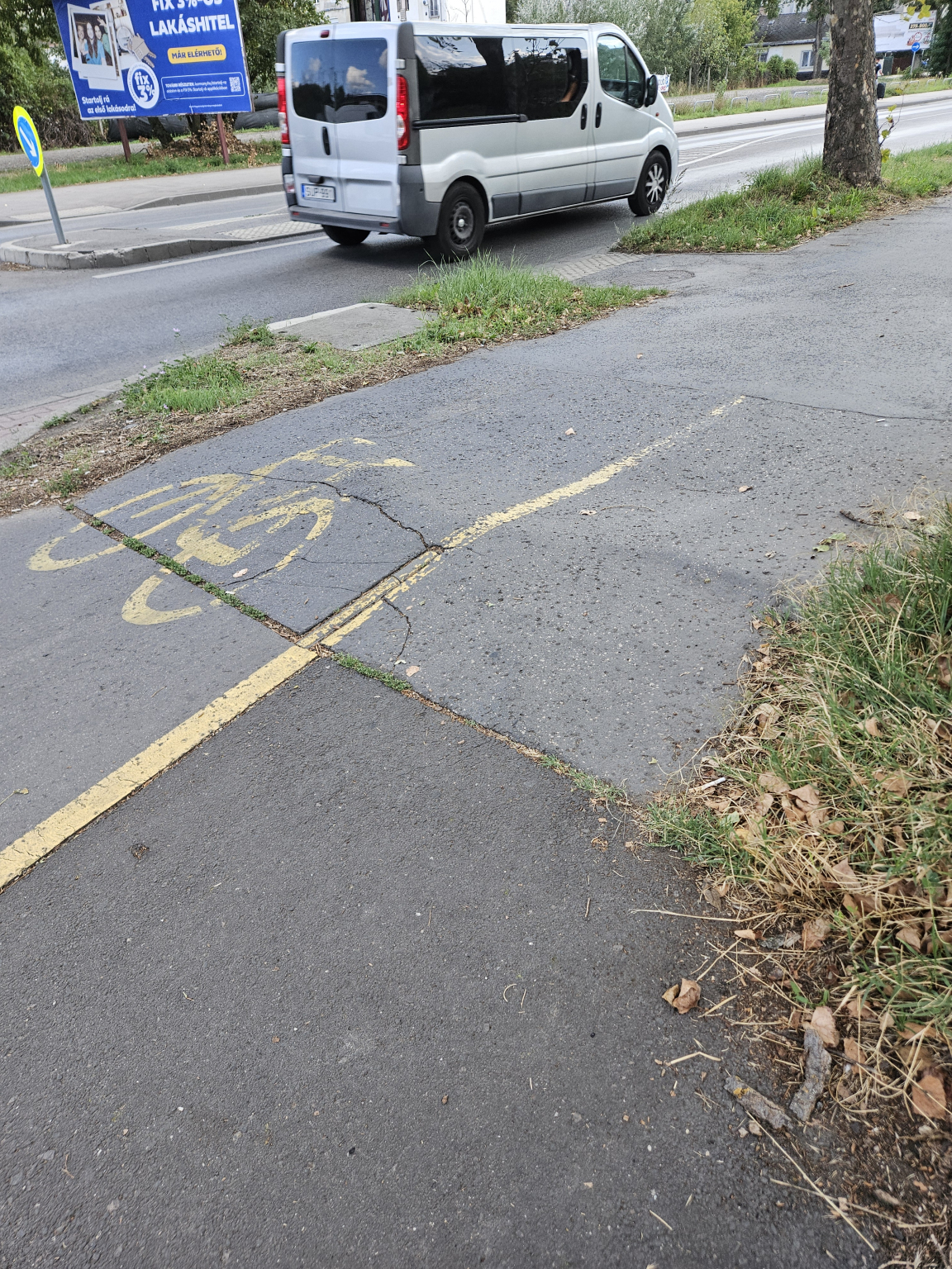Francia út csomópontjában a kerékpárúton kialakult gyökérfelnyomásra hívják fel a figyelmet, az alábbi