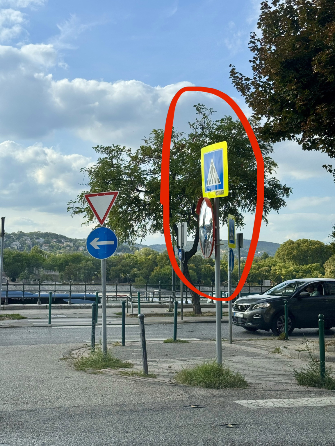 Az Újpesti rkp és a Katona József utca kereszteződésénél lévő közlekedést segítő tükör teljesen el van fordulva és nem látni benne a balról érkező forgalmat. Ez a tükör sokszor elmozdul és a másik sávot mutatja, ami viszont megtévesztő (azt gondolja az ember, nincs érkező forgalom), jobban kellene rögzíteni.