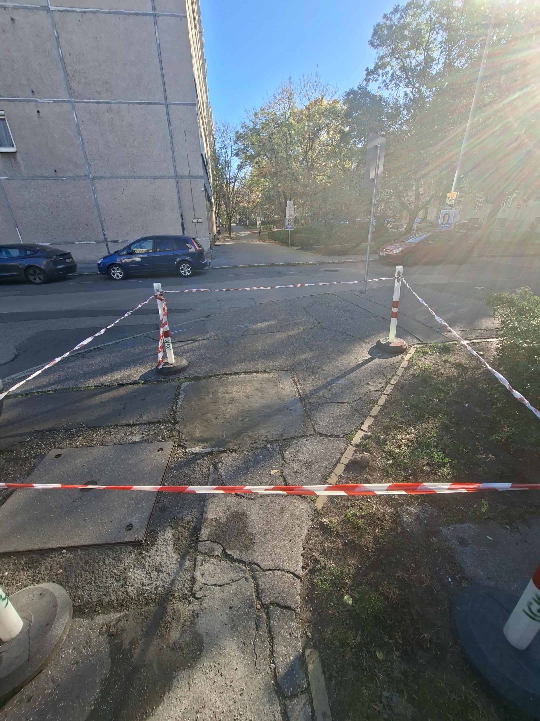 A Losonci téren a képen látható kis részen egy betonozott felület széttört.