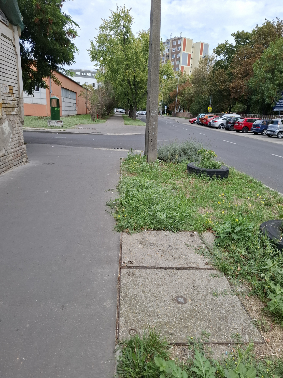 Az Aradi u. 10 előtt az aknafedélen nagy mélyedések vannak, a beton porózus. Kérem cseréljék!