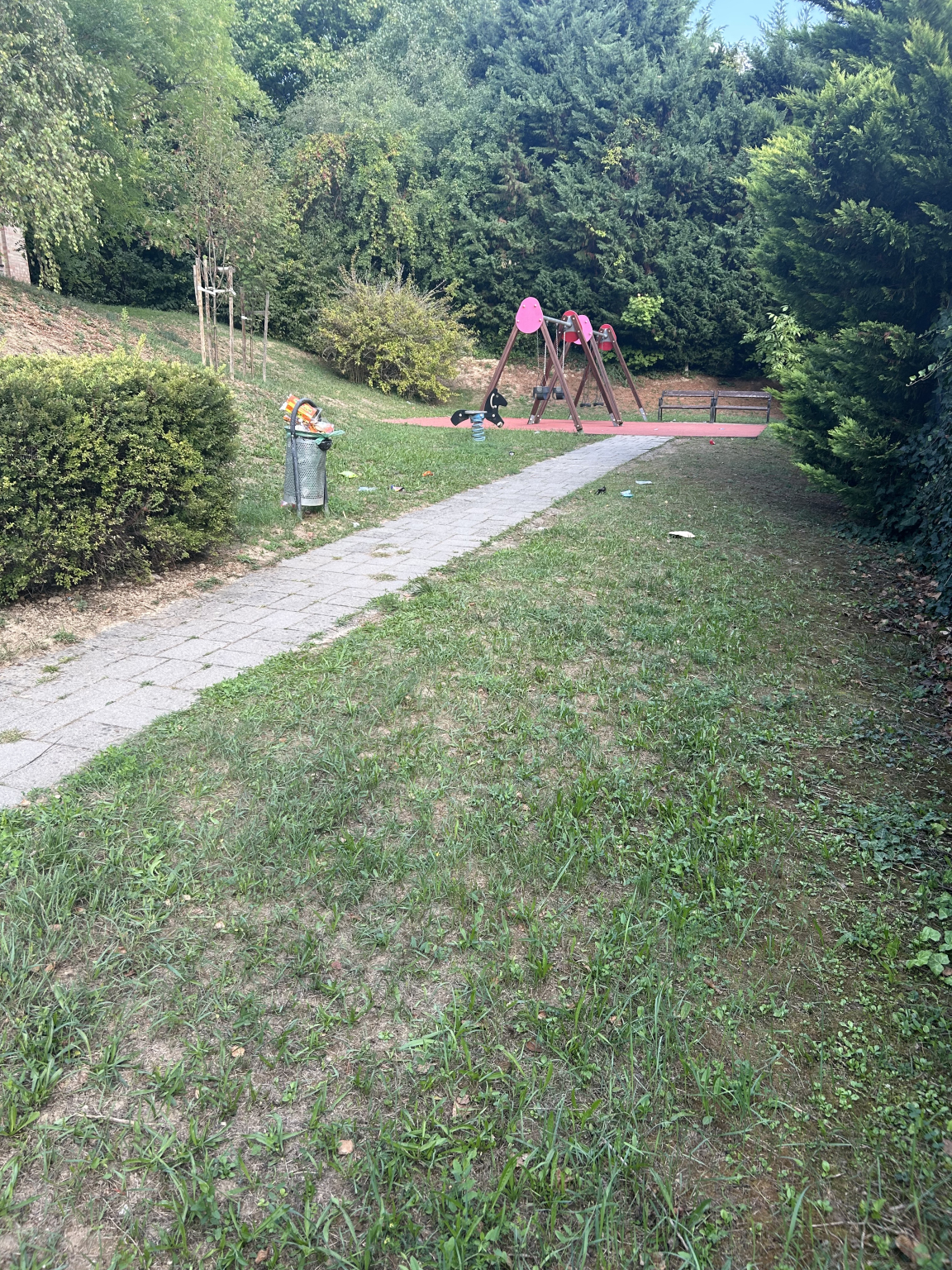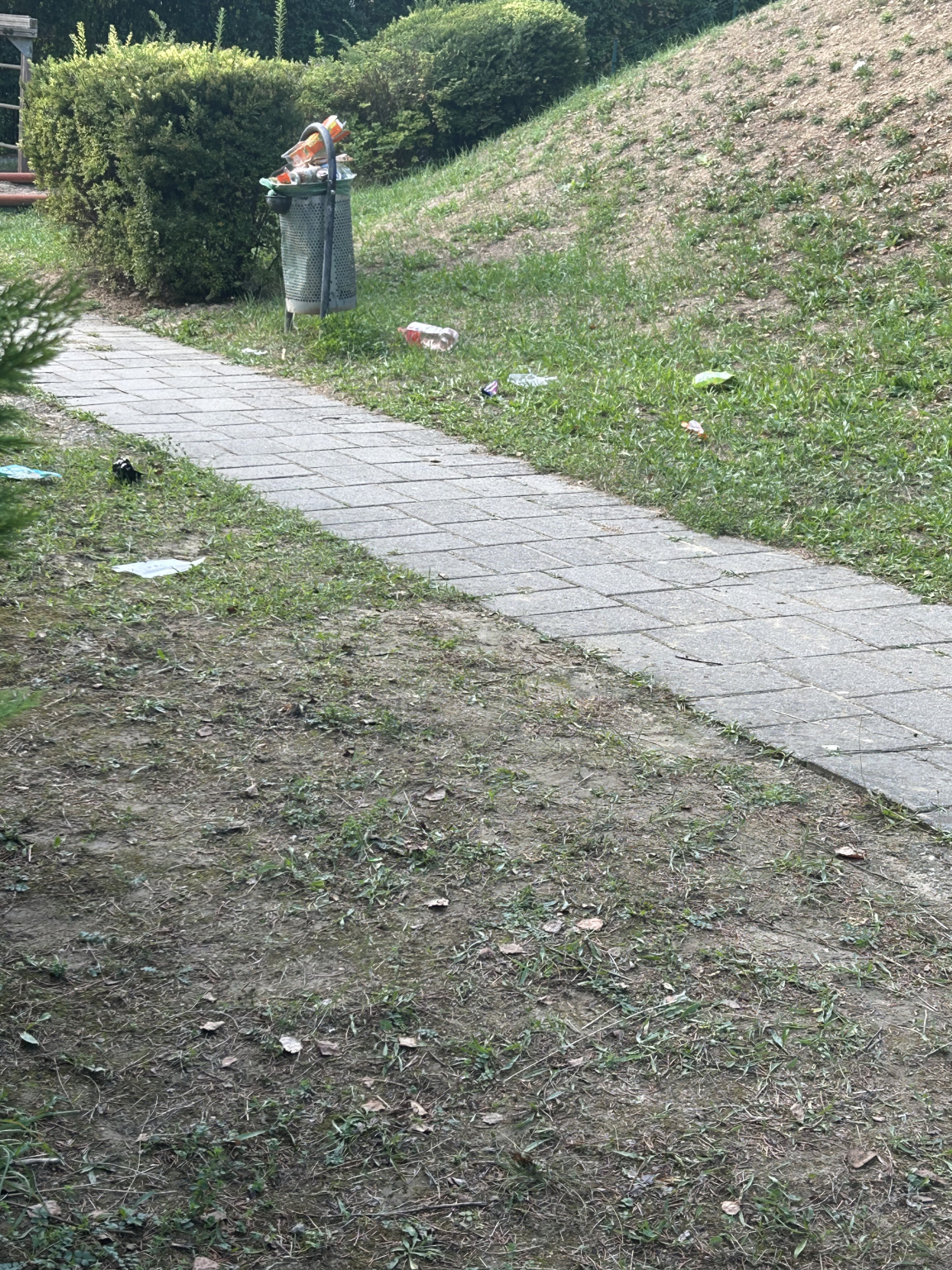 A játszótéren tele a kuka , szeméttel van teleszórva az egész környék!