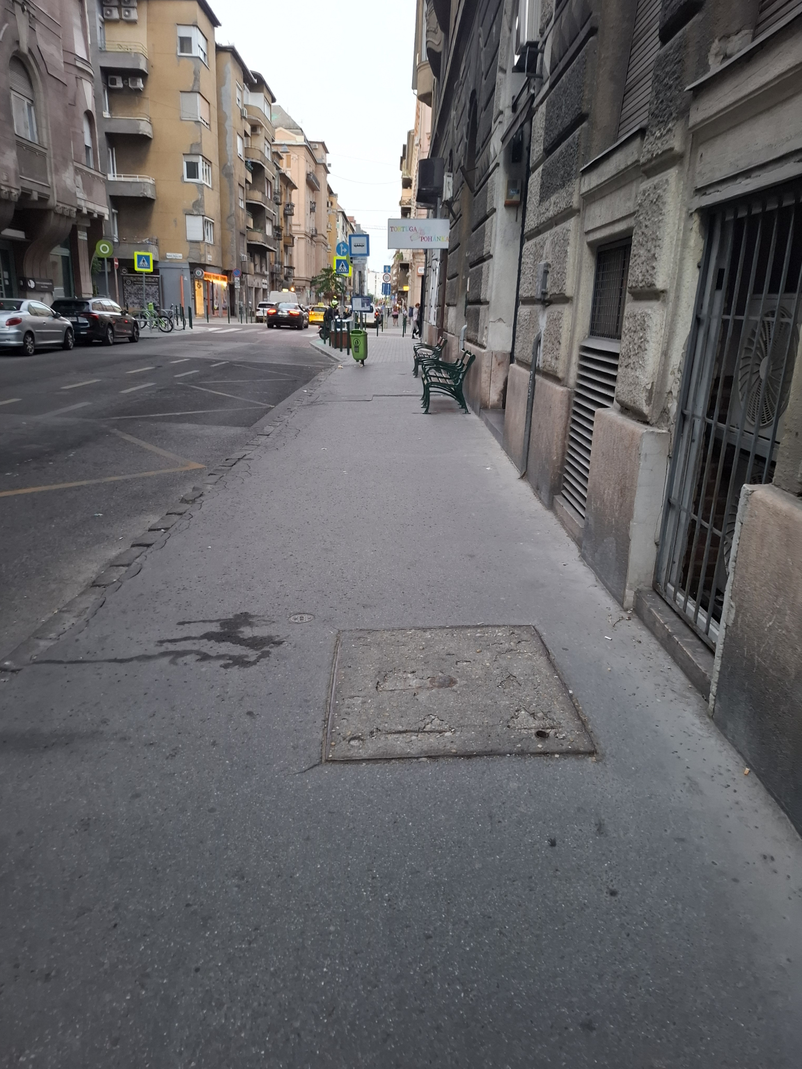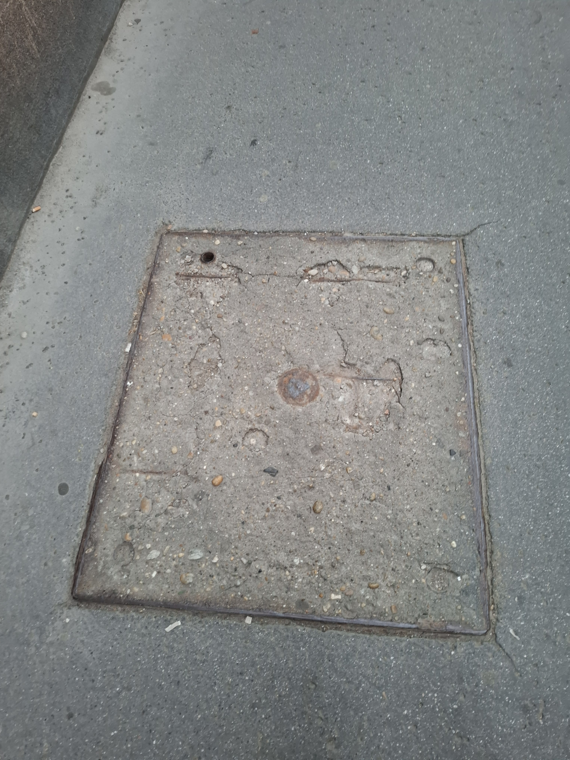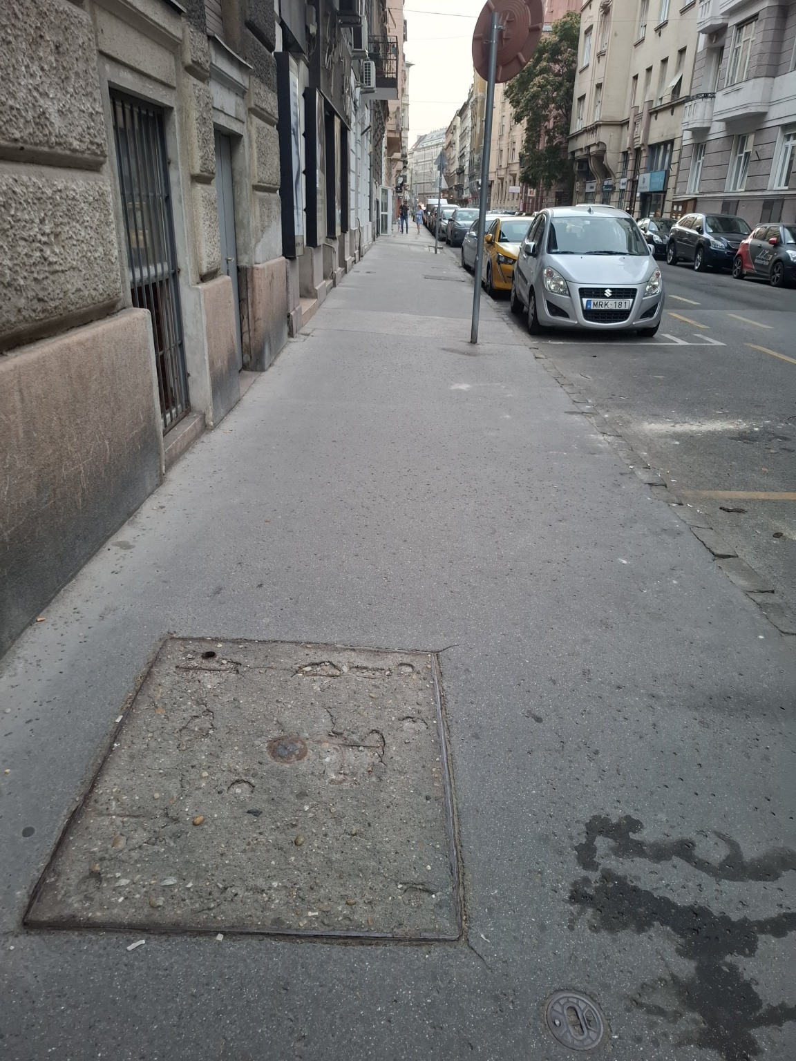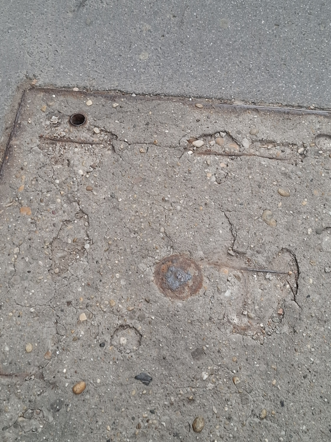 A fedlap több helyen ia sérült, a betonvasak is kilátszanak belőle.