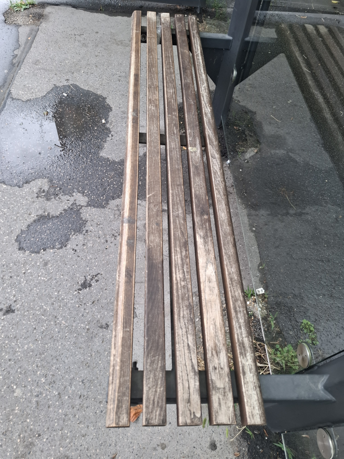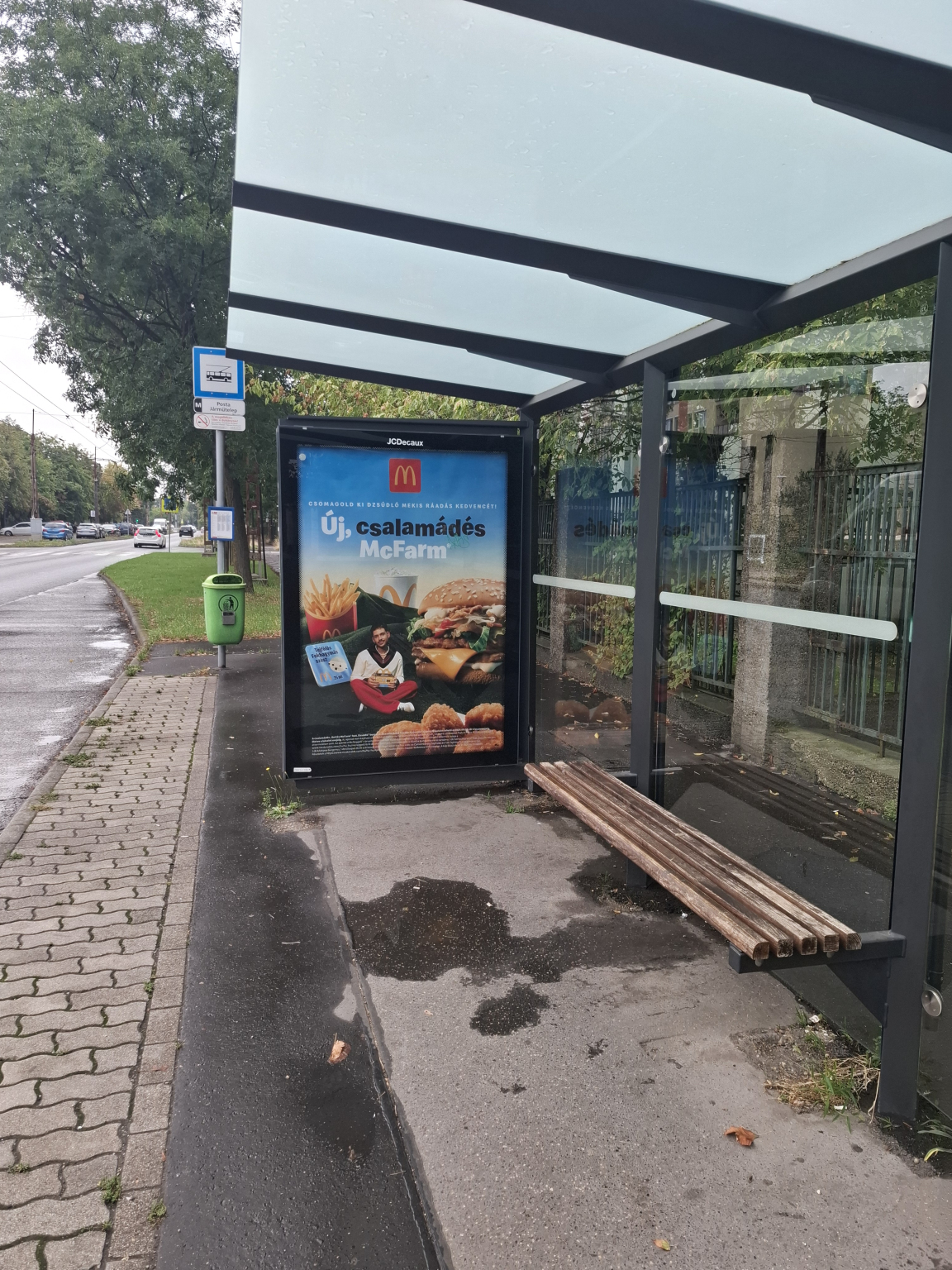 A megállóban lévő padról ledörzsölődött a festék, elég csúnyán néz ki. Kérem javítsák!