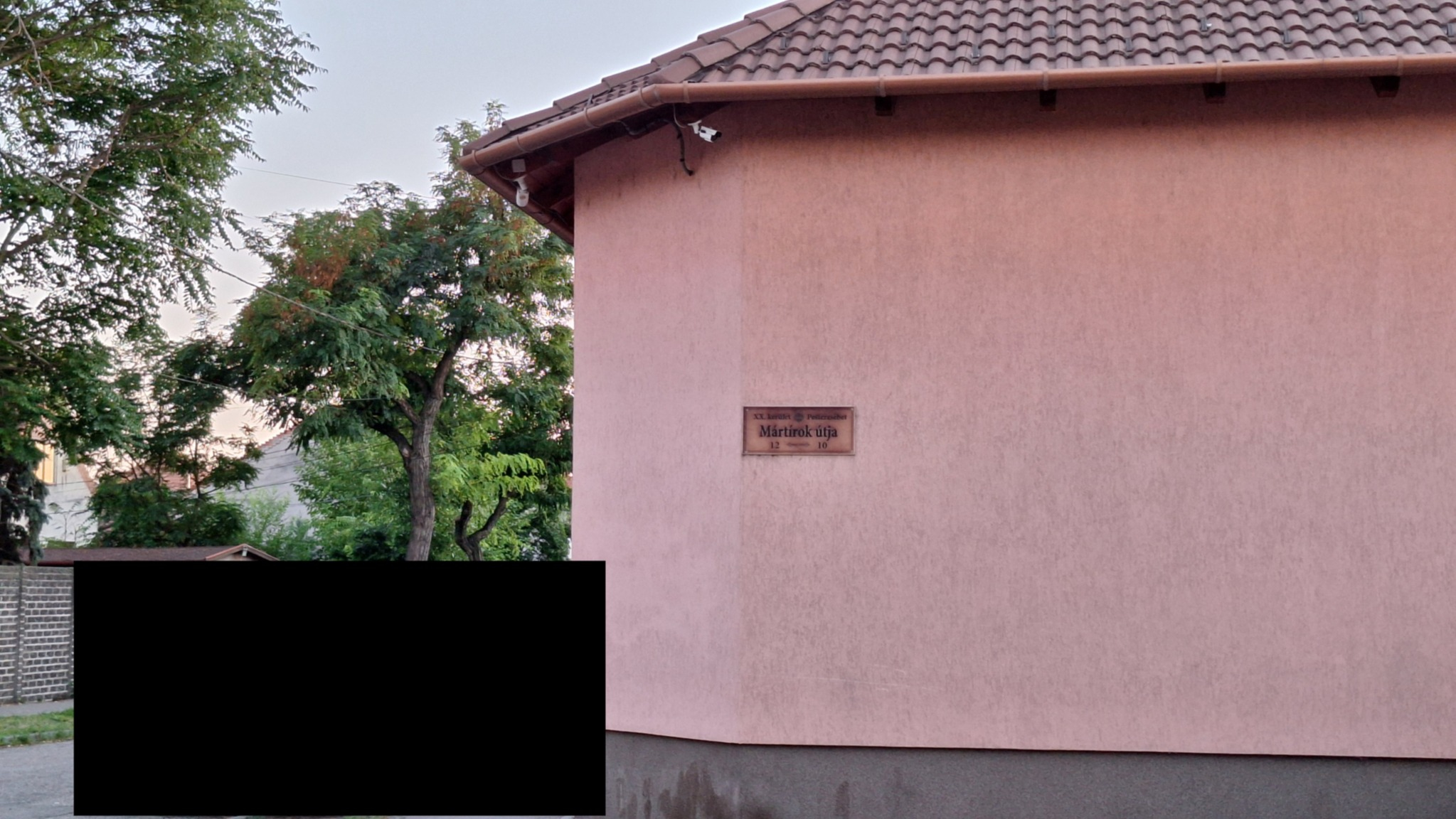 A Mártírok útja 12. sarkán erősen bebarnult egy utcanévtábla.