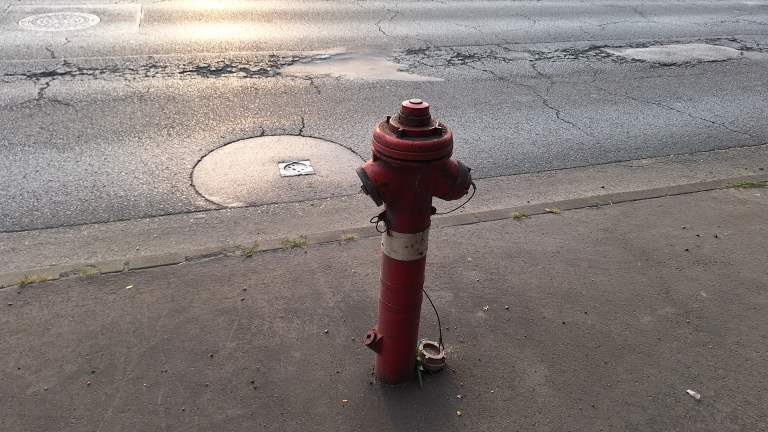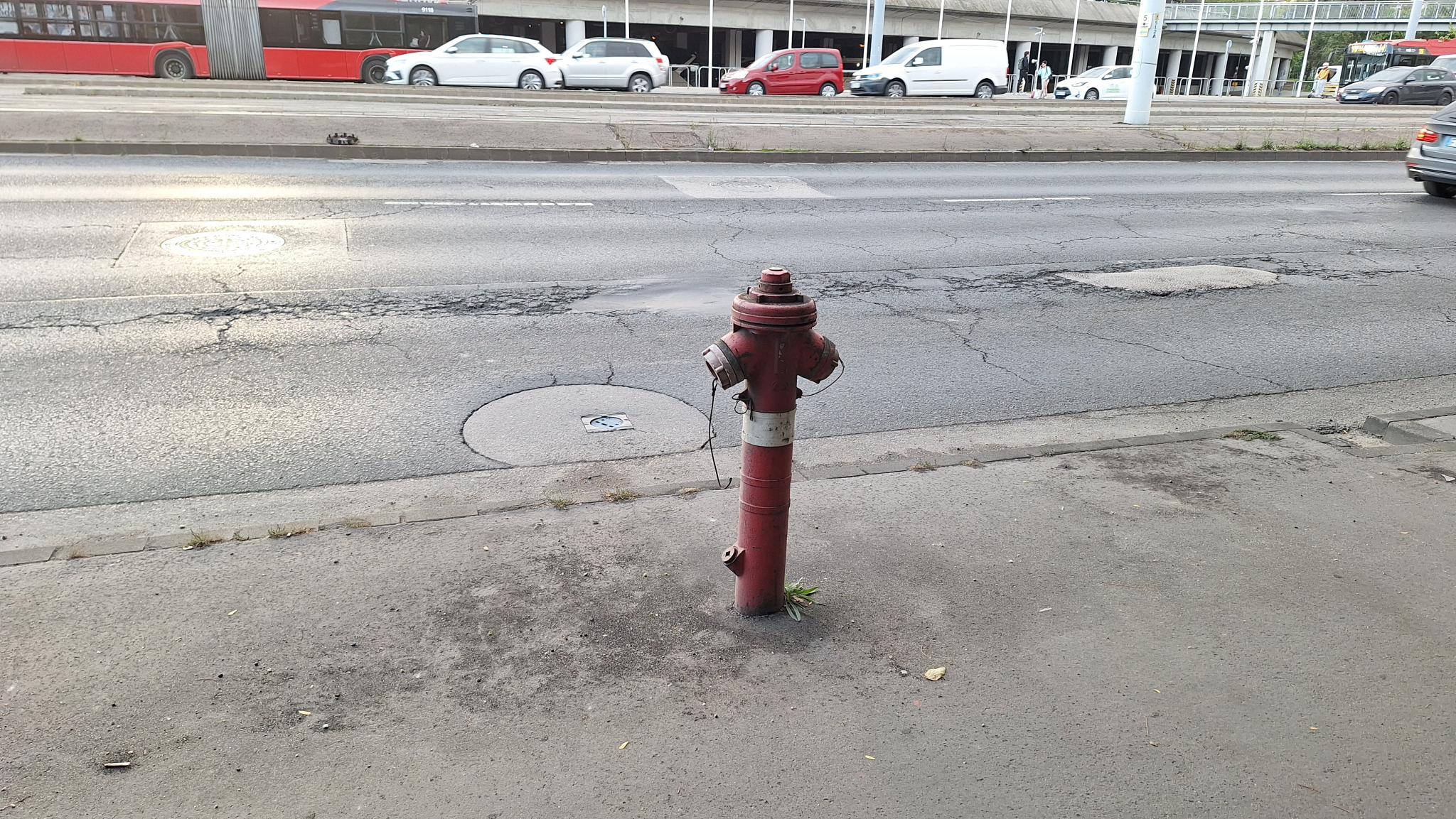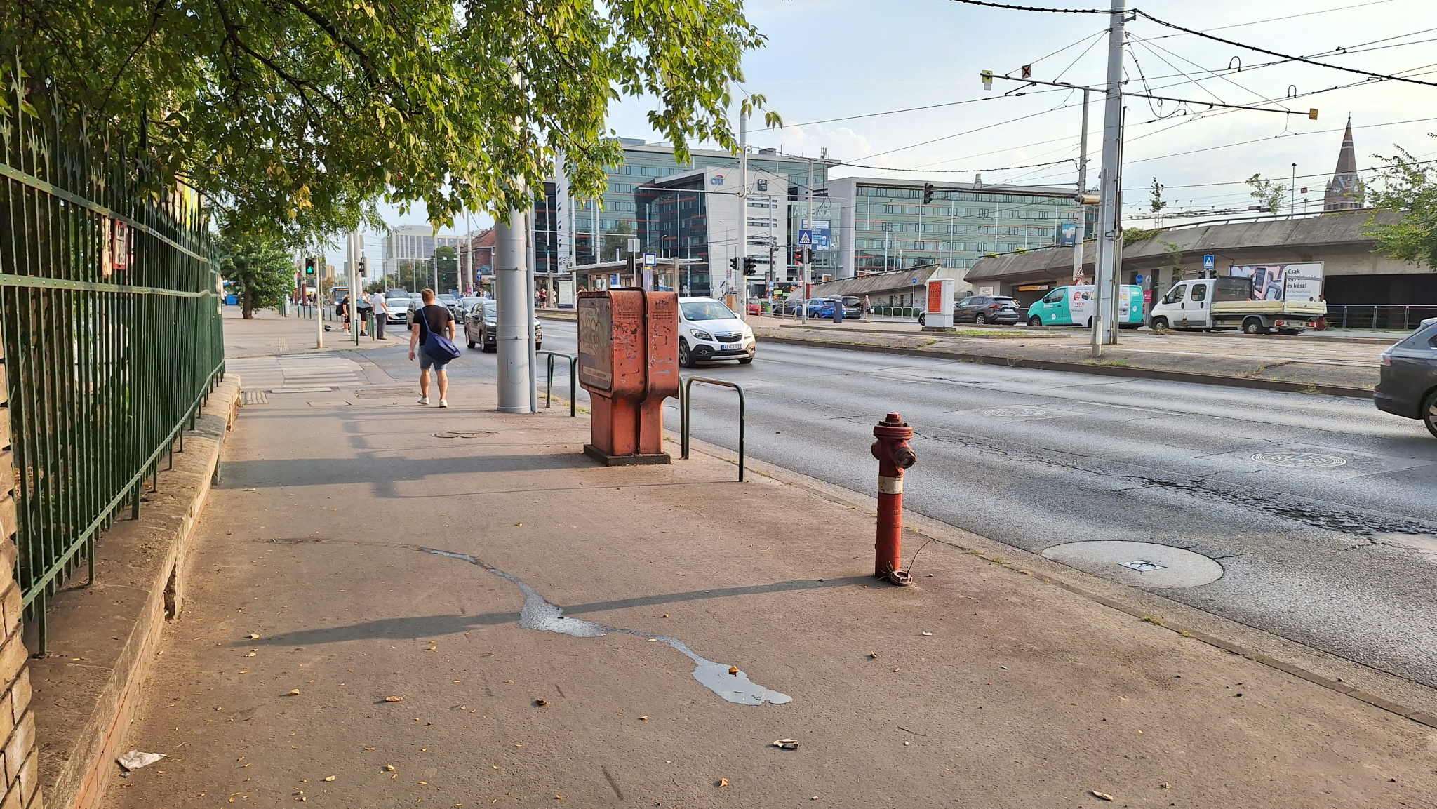 A Hungária körút 21. előtti tűzcsapnak lejött az egyik kupakja.