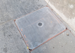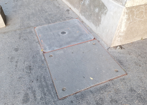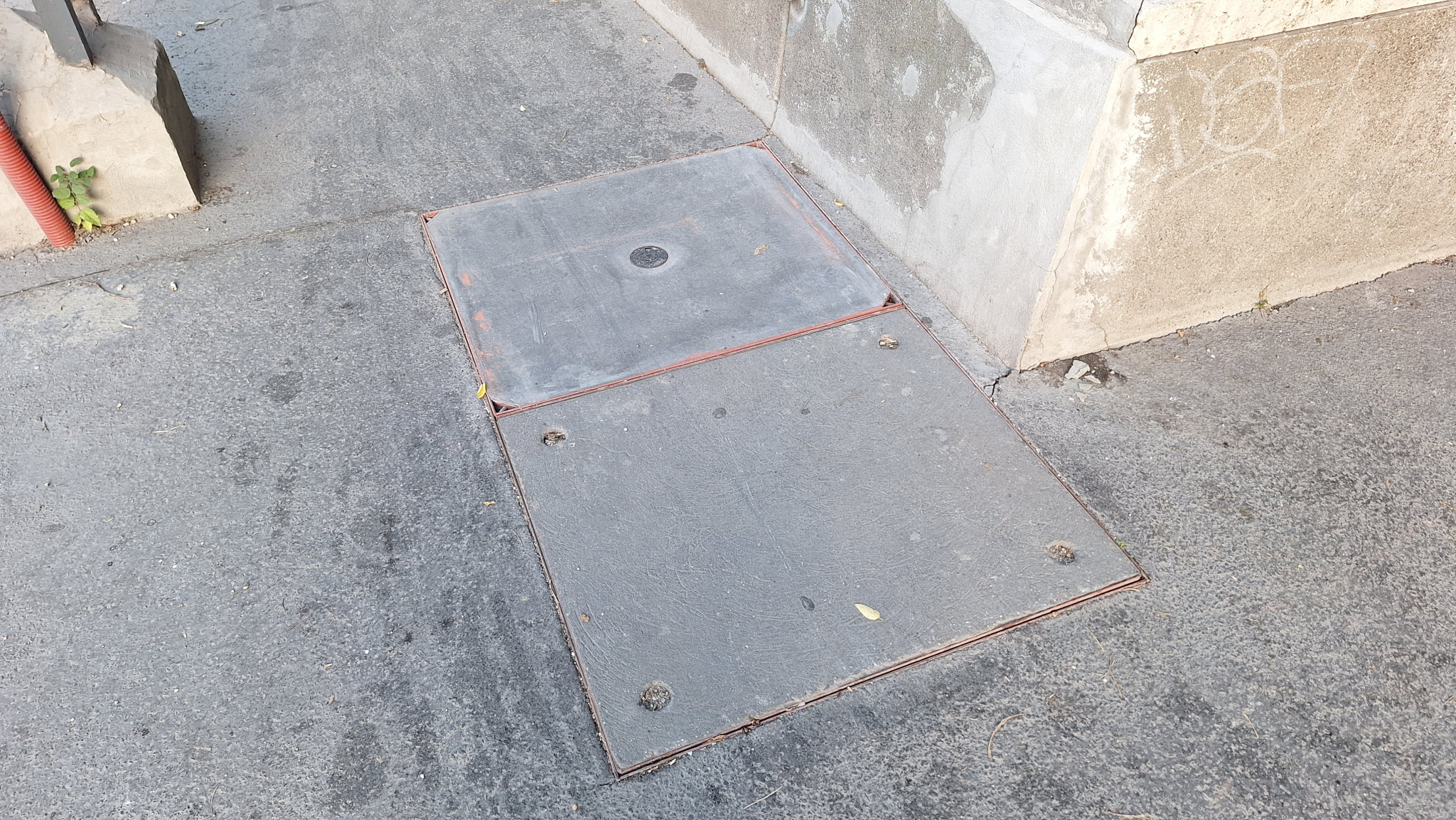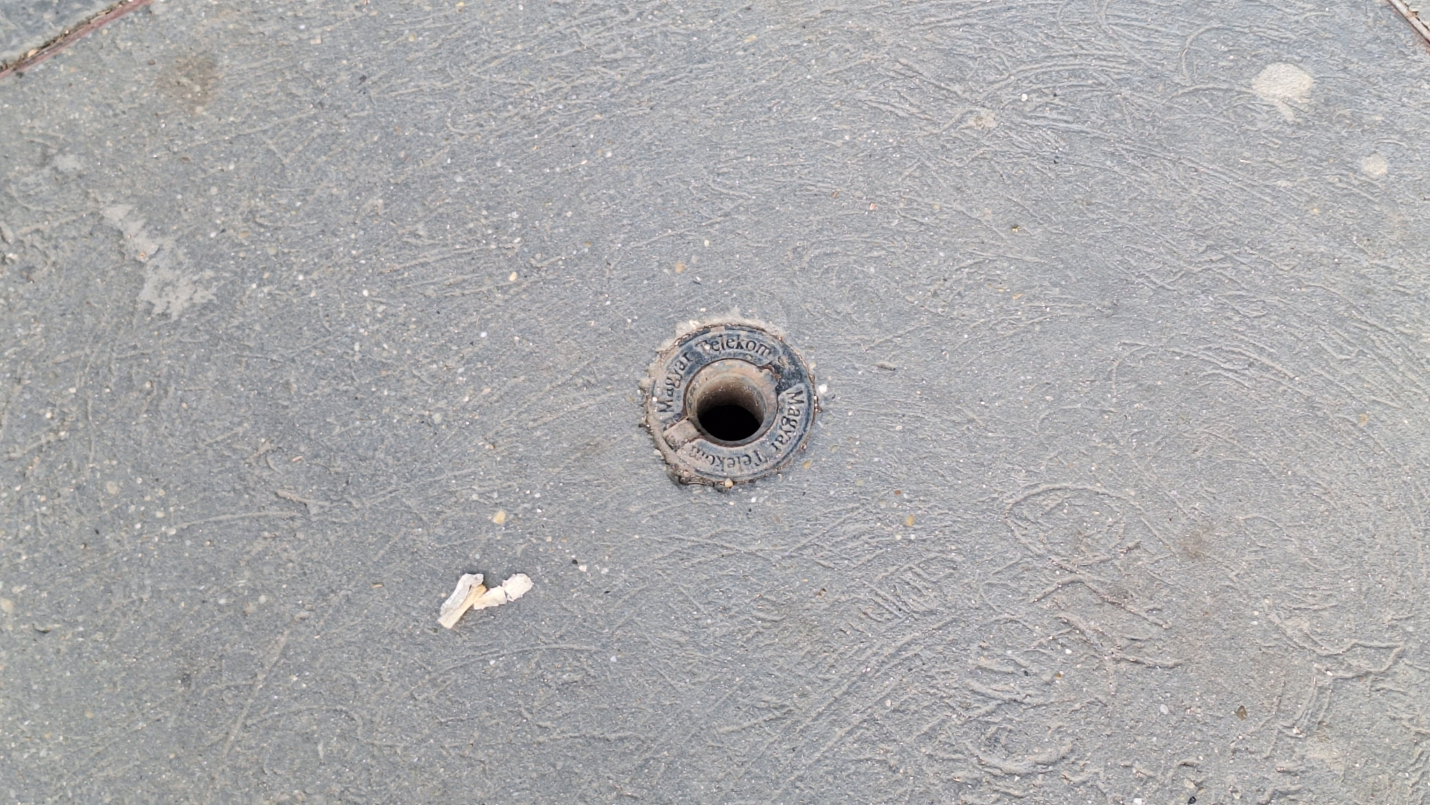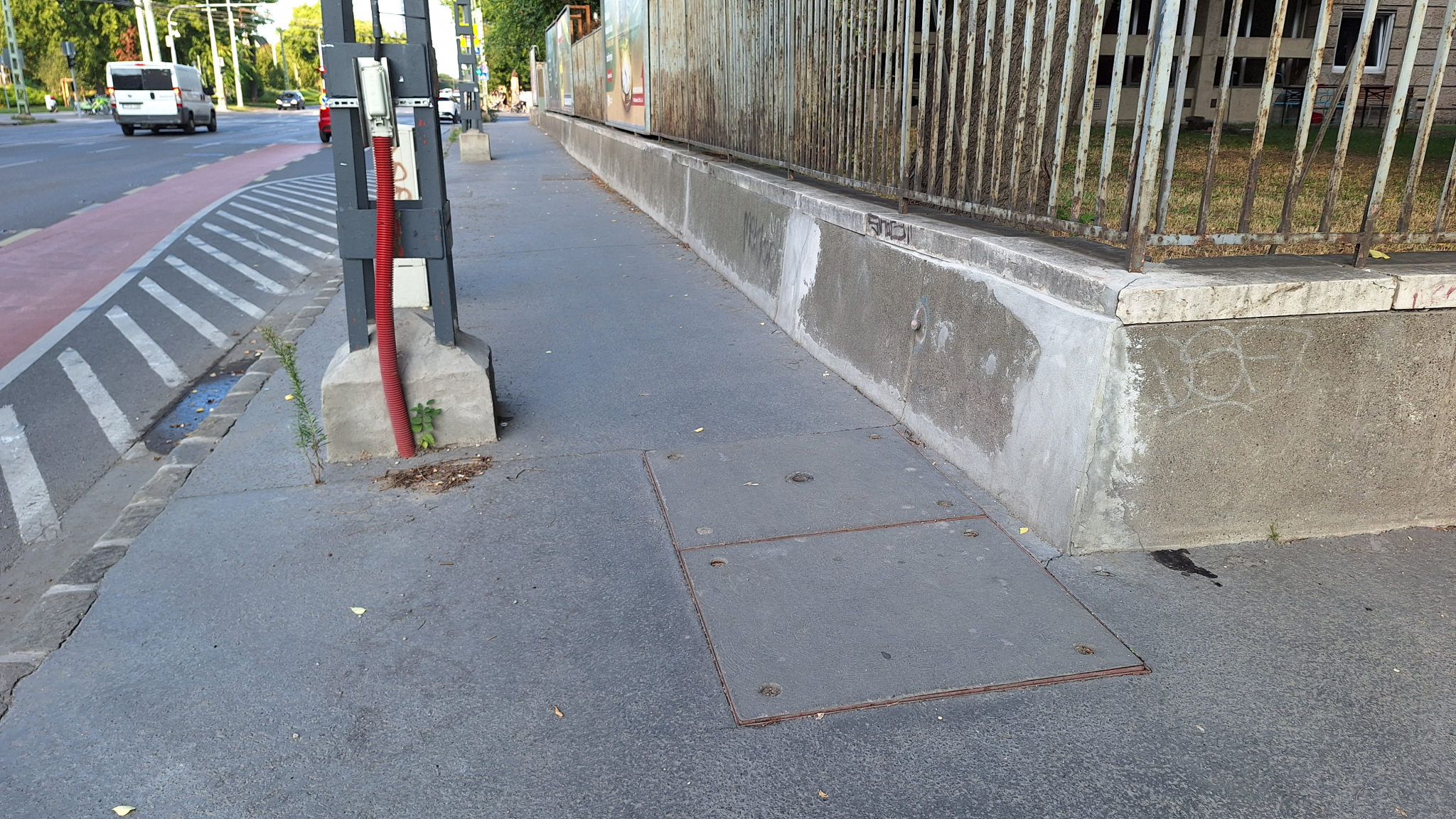 Az Ajtósi Dürer sor és Zichy Géza utca sarkán lyukas az egyik aknafedél.