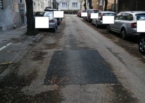 A Budapest III. kerület, Szomolnok utcában az egyre nagyobbodó kátyút kellene szépen, tartósan befoltozni.