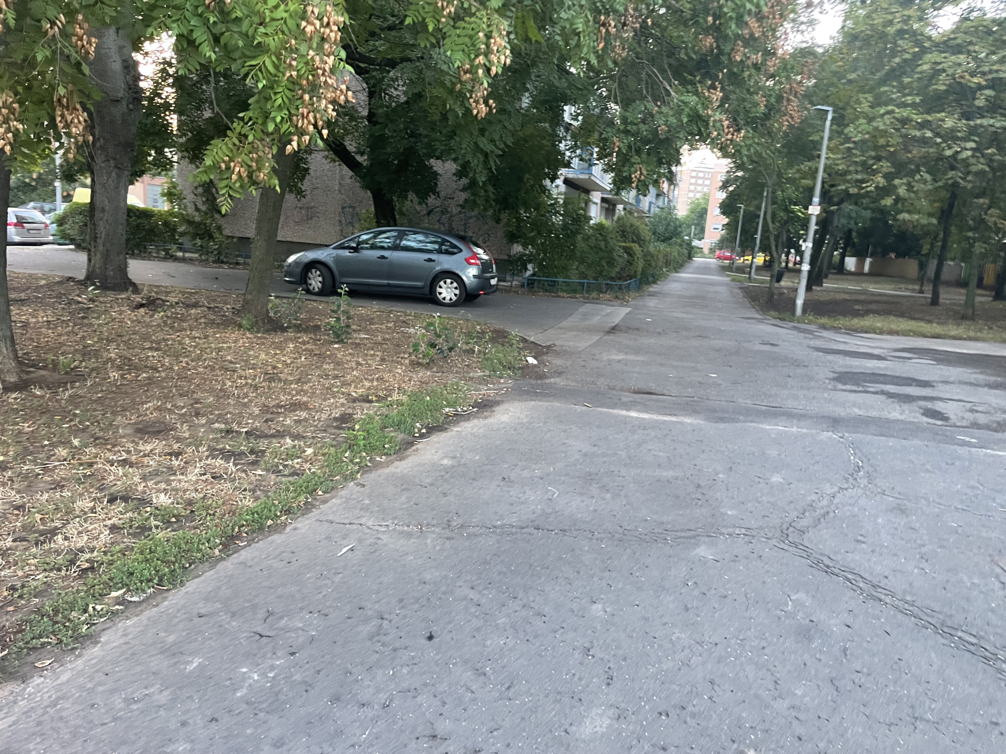 A szülők akik az óvodába viszik a gyerekeket folyamatosan behajtania a tábla ellenére. Retorzió meg nincs… Mivel állandóan sietnek van hogy ezen a rövid szakaszon a gyalogosok, babakocsit és kutyák között 50-70km/h tempót diktálnak. Más megoldás kell pl fekvő rendőr vagy virág,Ada ami lassítja a haladást.