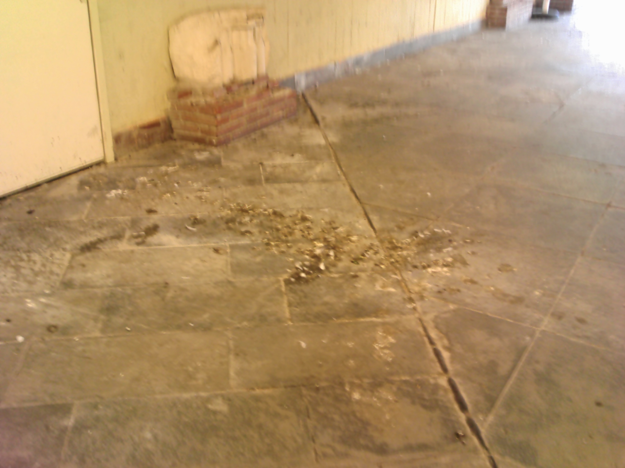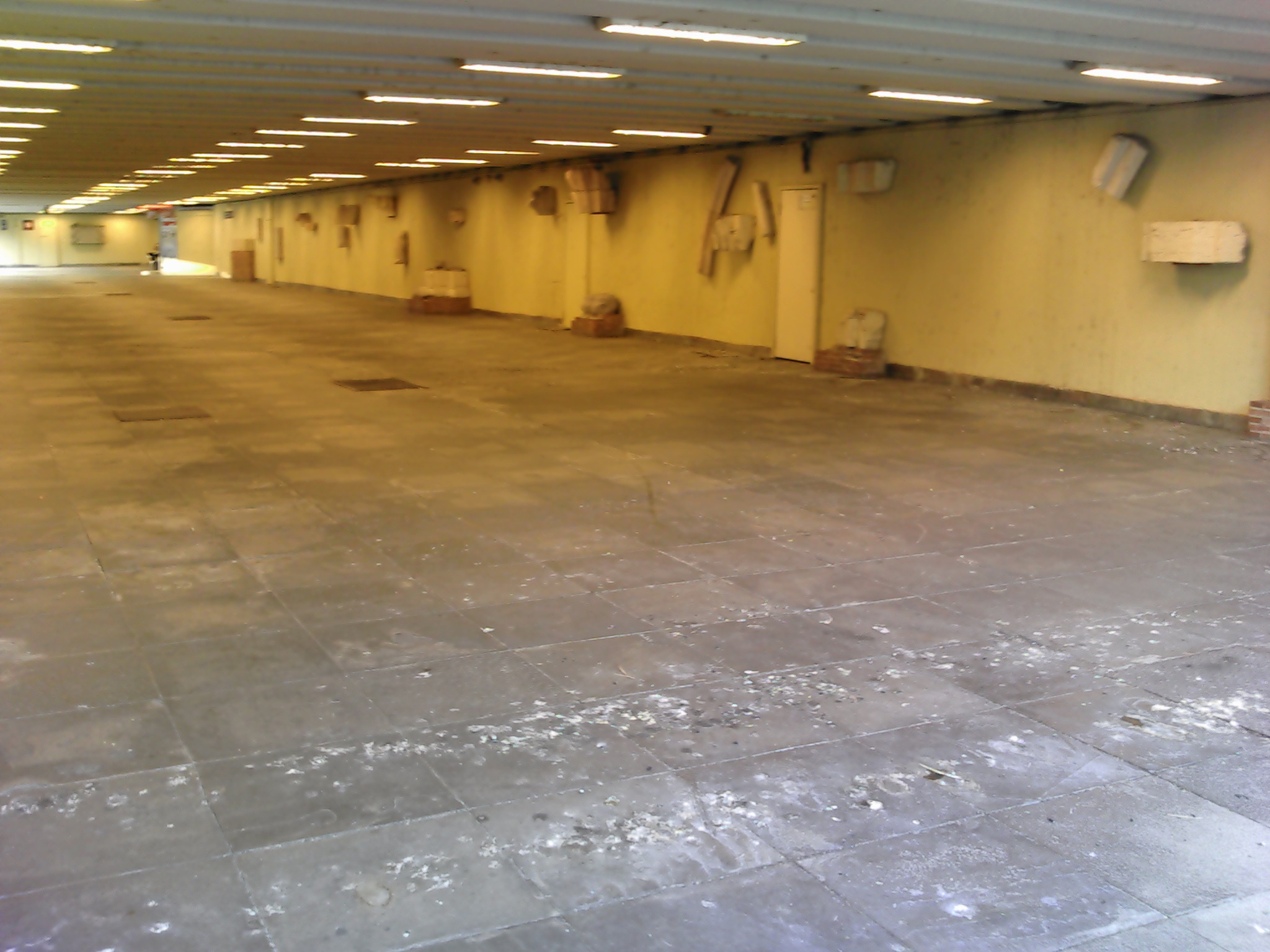 A Budapest III. kerület, Flórián téri aluljáróban a "C" kijárathoz közeli padlóburkolatot kellene alaposan megtisztítani a madárürüléktől.