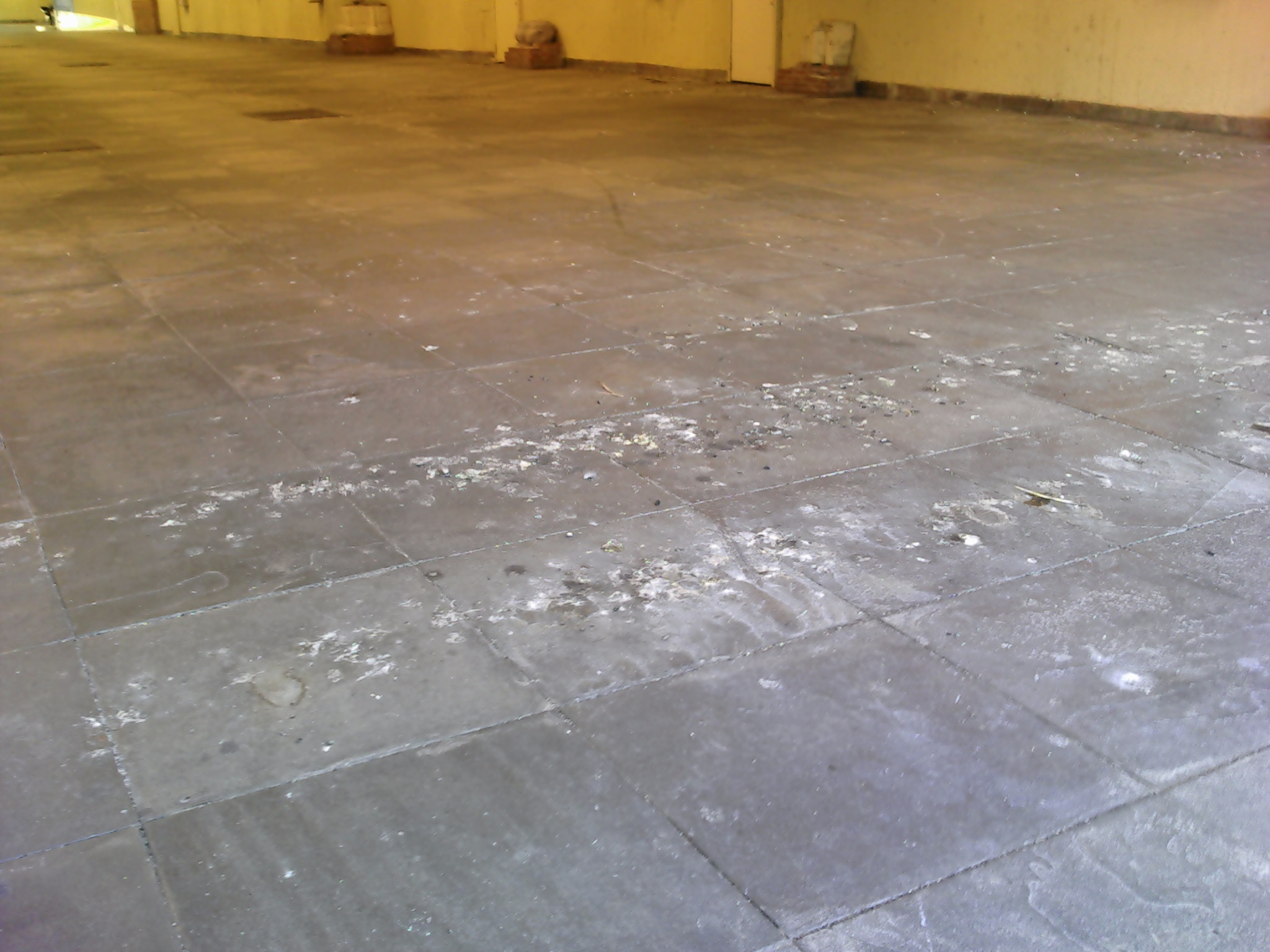 Madárürüléktől szennyezett padlóburkolat tisztítása az aluljáróban