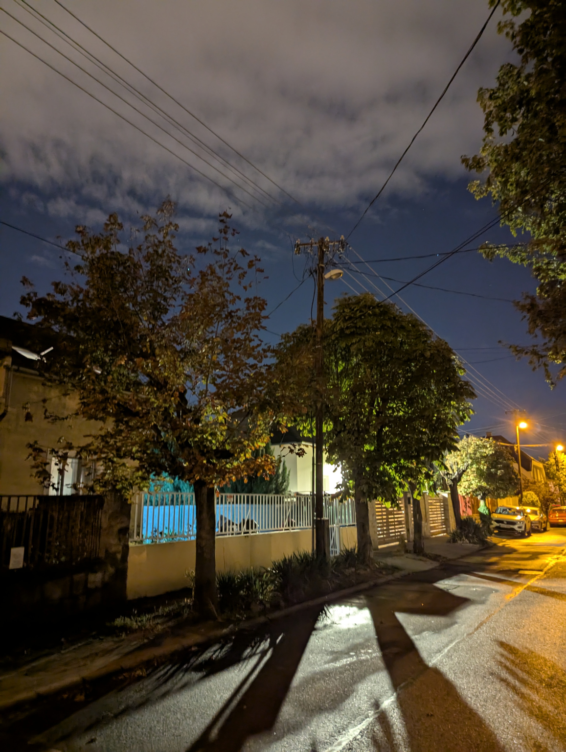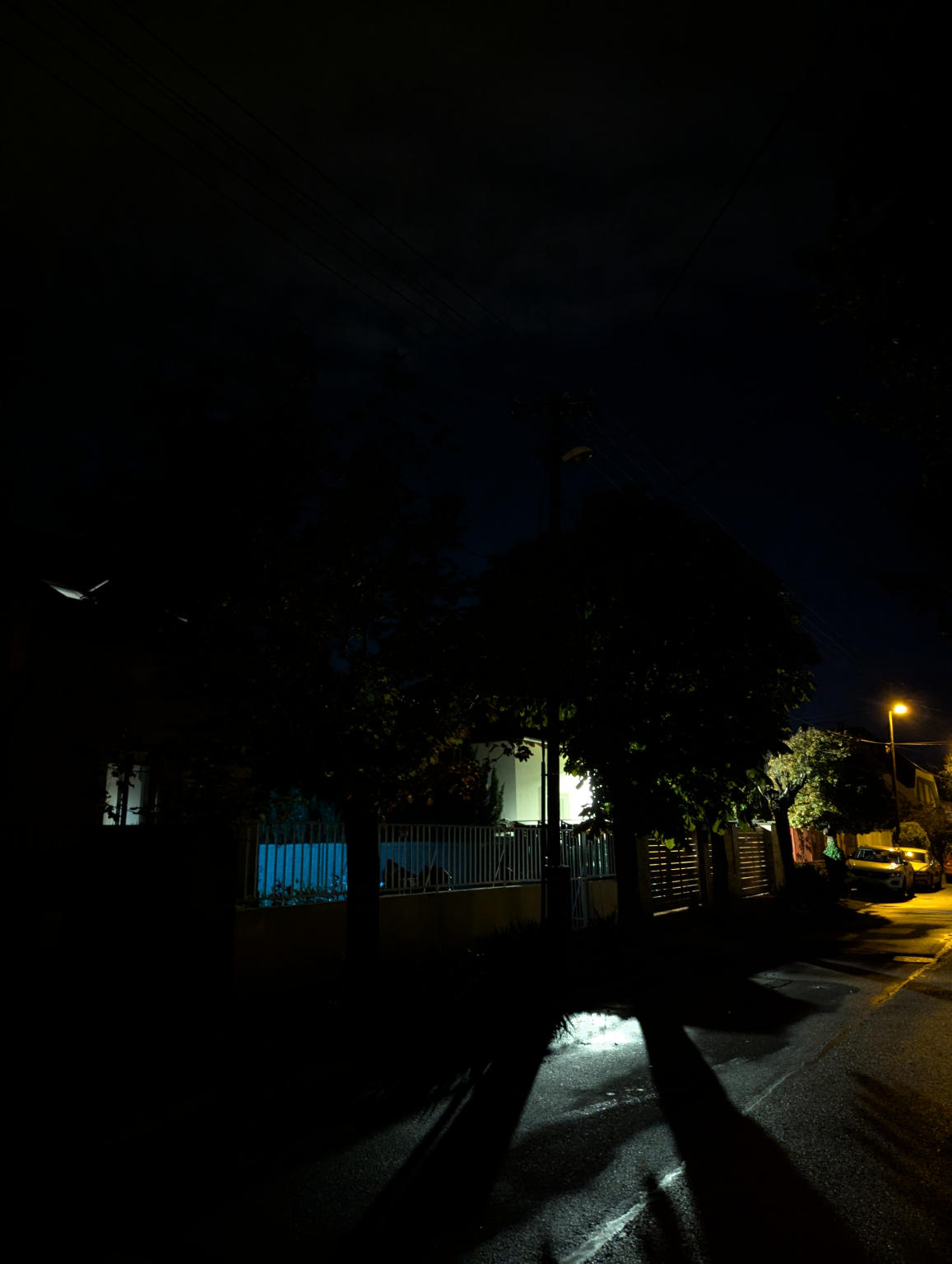 A 1155 Budapest, Vág utca 7. szám előtt található villanypózna nem világít éjszaka a többivel együtt, valószínűleg kiégett, sötét van körülötte.