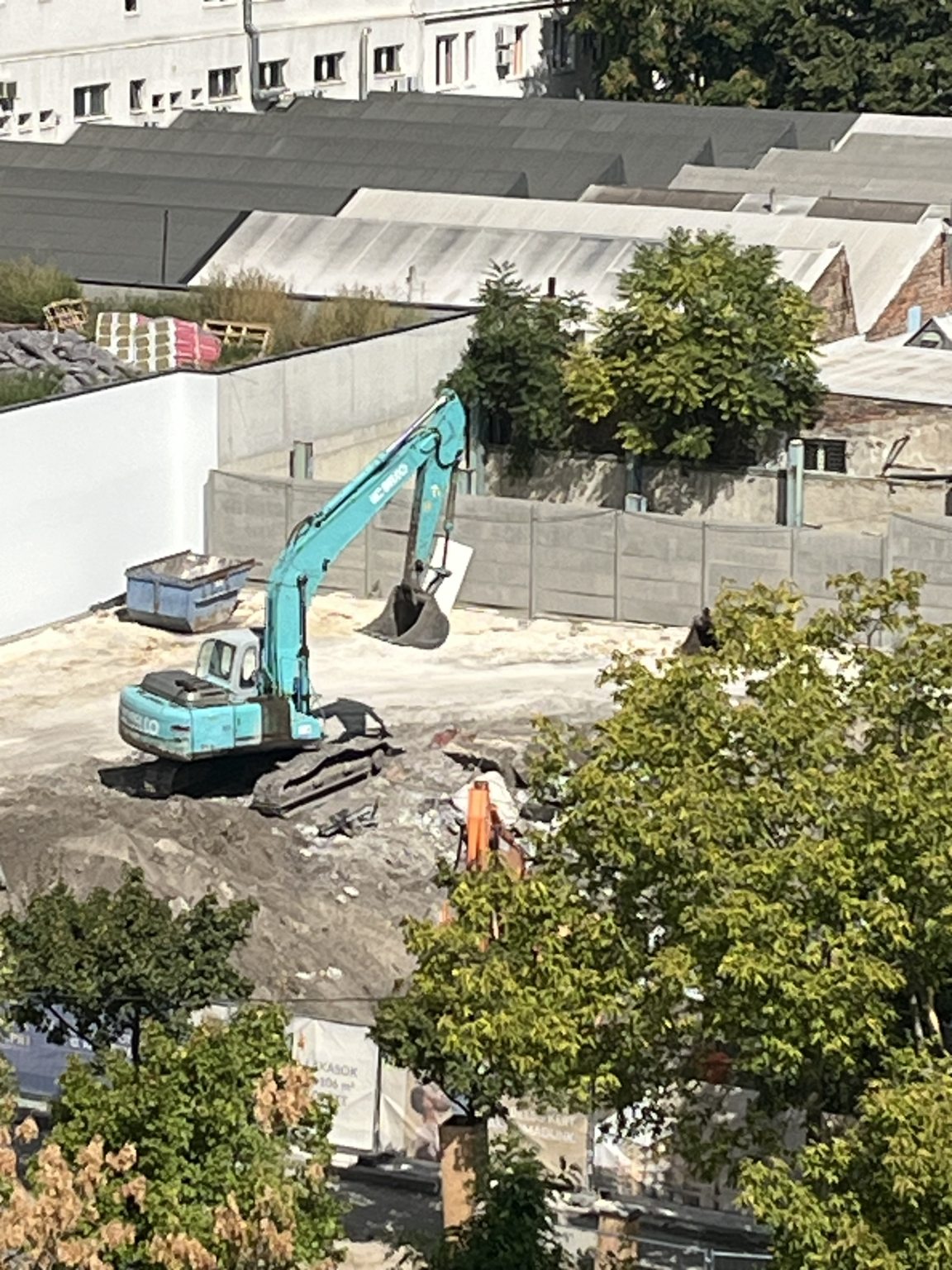 Jelenleg az építendő társasház teremgarázs szintjei miatt zajlik bontás.