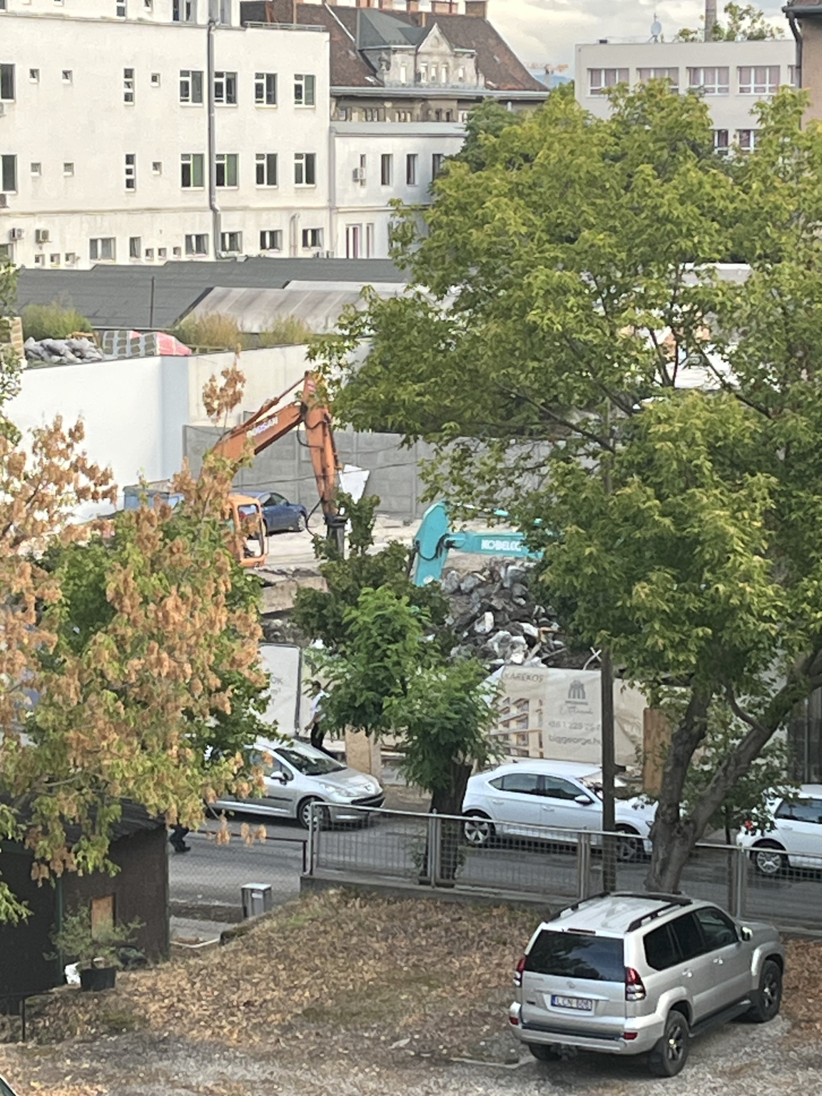 A volt APEH épület bontása is már extrém zajjal és porral járt az elmúlt hónapokban. Többszöri bejelentés után legalább locsolni kezdték az épp bontandó területet.