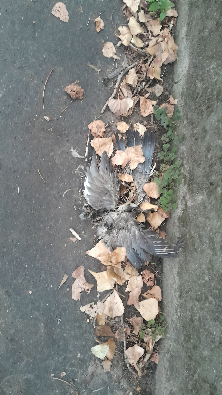 Wekerlén az Álmos u. 1. alatt a Pannonia u. felöli kerítése tövében elhullott, oszladozó galamb t teteme fekszik több napja.