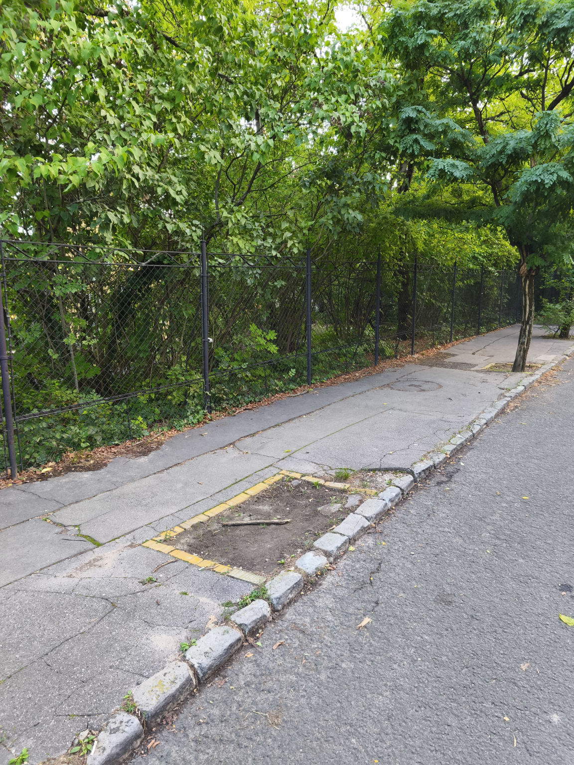A Mártonhegyi úton a Nárcisz utca és a Deres utca közötti szakaszon 4 fa kipusztult, és 3 üres faverem van. Az egész fasor elhanyagolt.