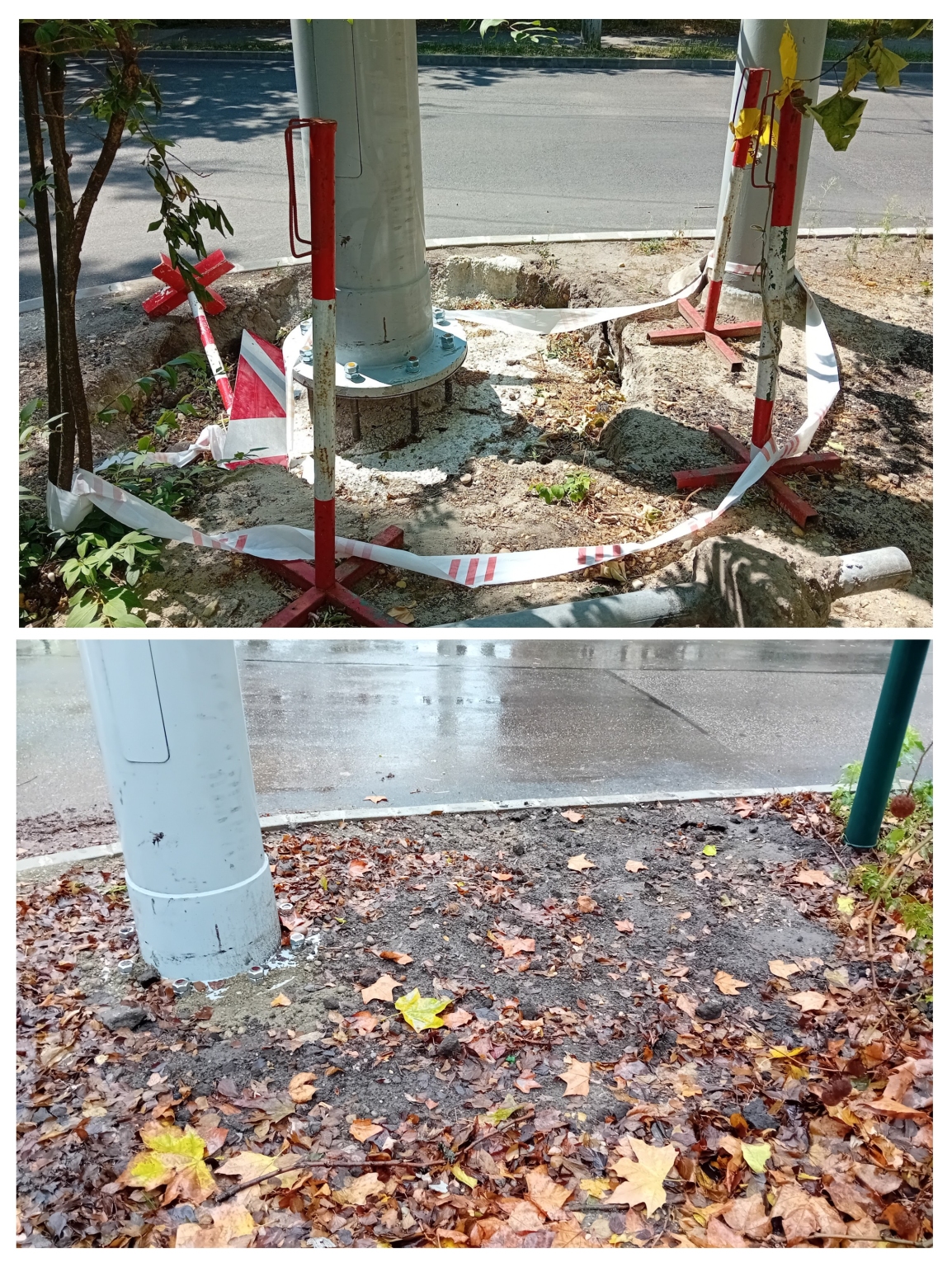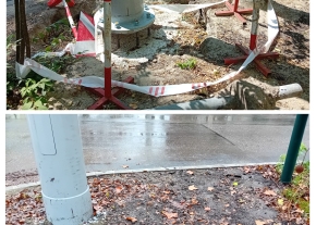 A házunk előtt kicserélték a régi trolivezeték-tartó oszlopot. Az új körül még nem rendezték a hátrahagyott gödröt. A régi oszlop még mindig a helyén áll, nagy szélben dülöngél, veszélyeztetve ezzel az úton haladókat - autósokat, trolikat, motorosokat, bicikliseket,