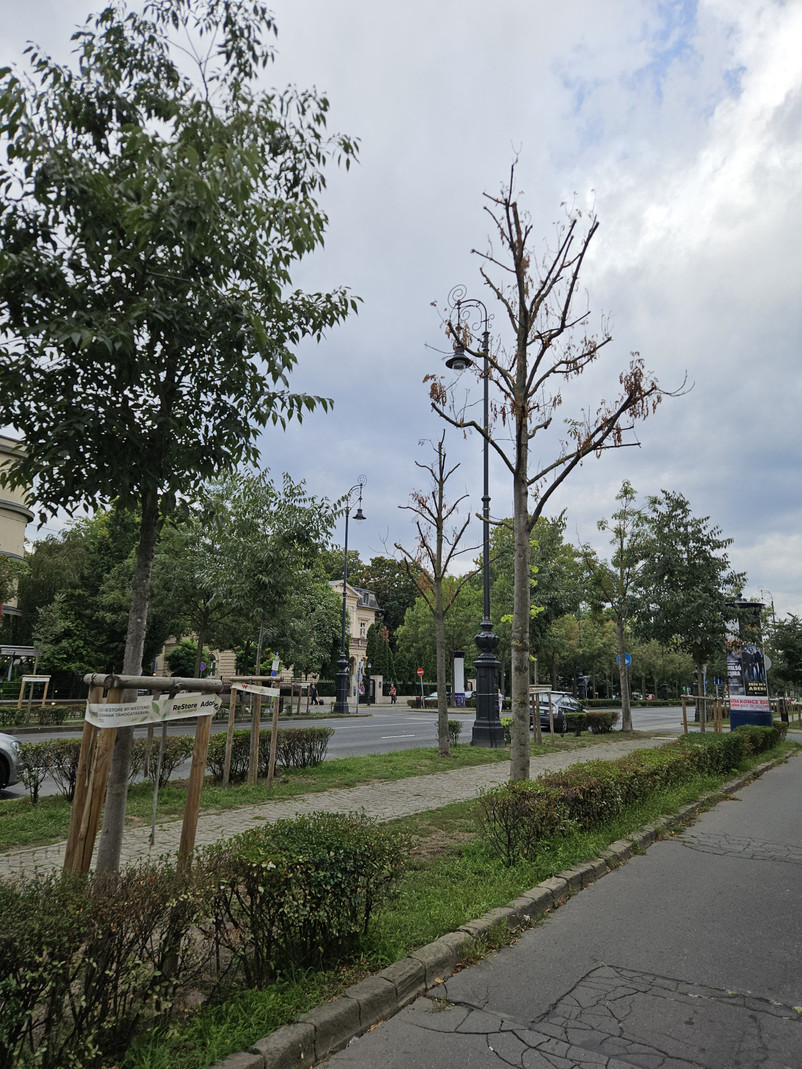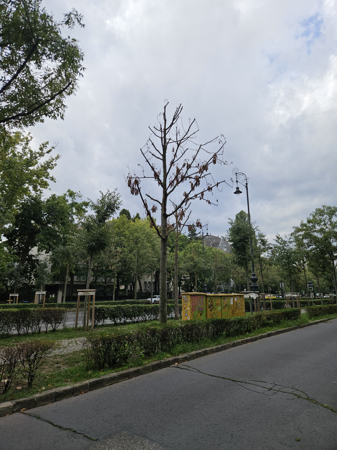 Az Andrássy úti fasor (főleg a Kodály körönd es a Hősok tere között) nagyon rossz allapotban van. Sok fa telejesen száraz, nincs se ága se lombja. Ideje lenne nem csak pótolni hanem ápolni is a fákat!