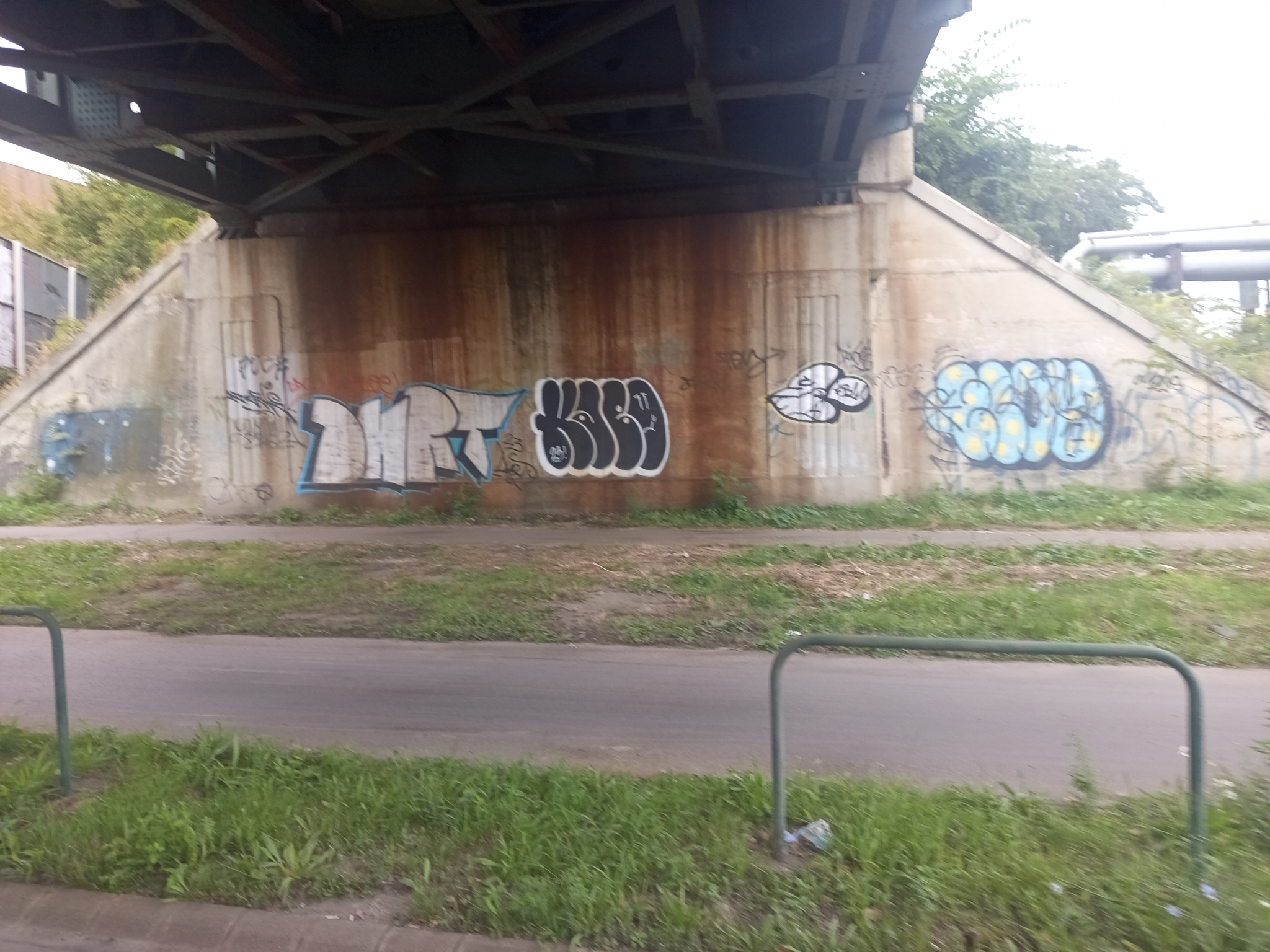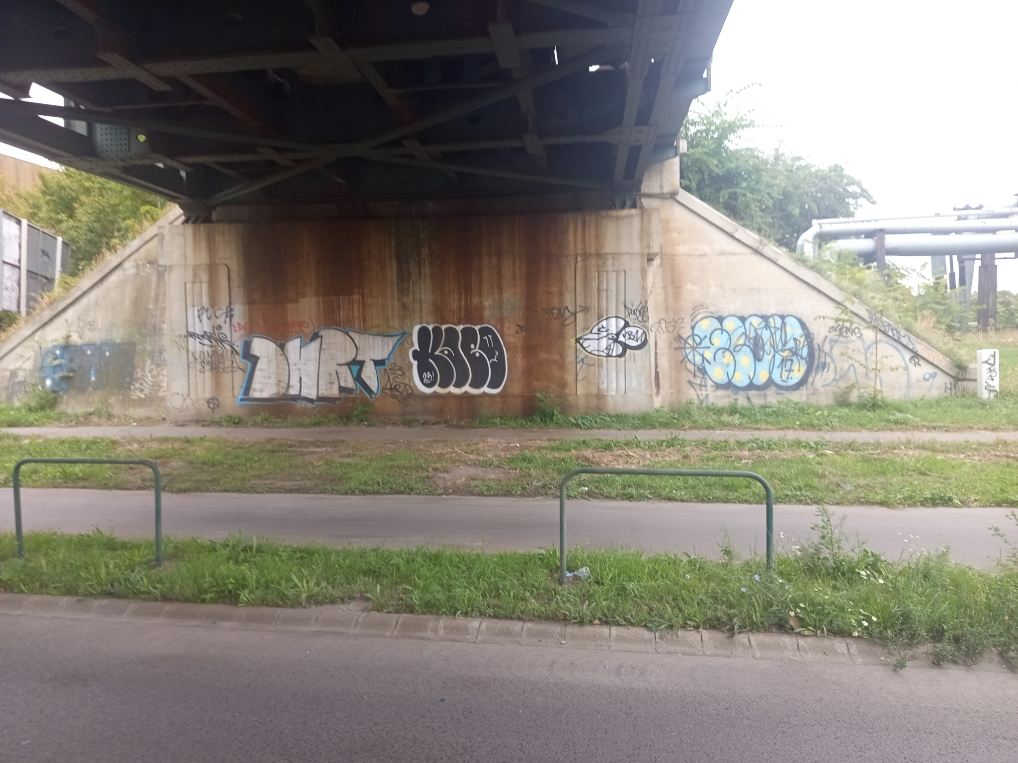 Egy nagyon koszos és graffitis vasúti felüljáró