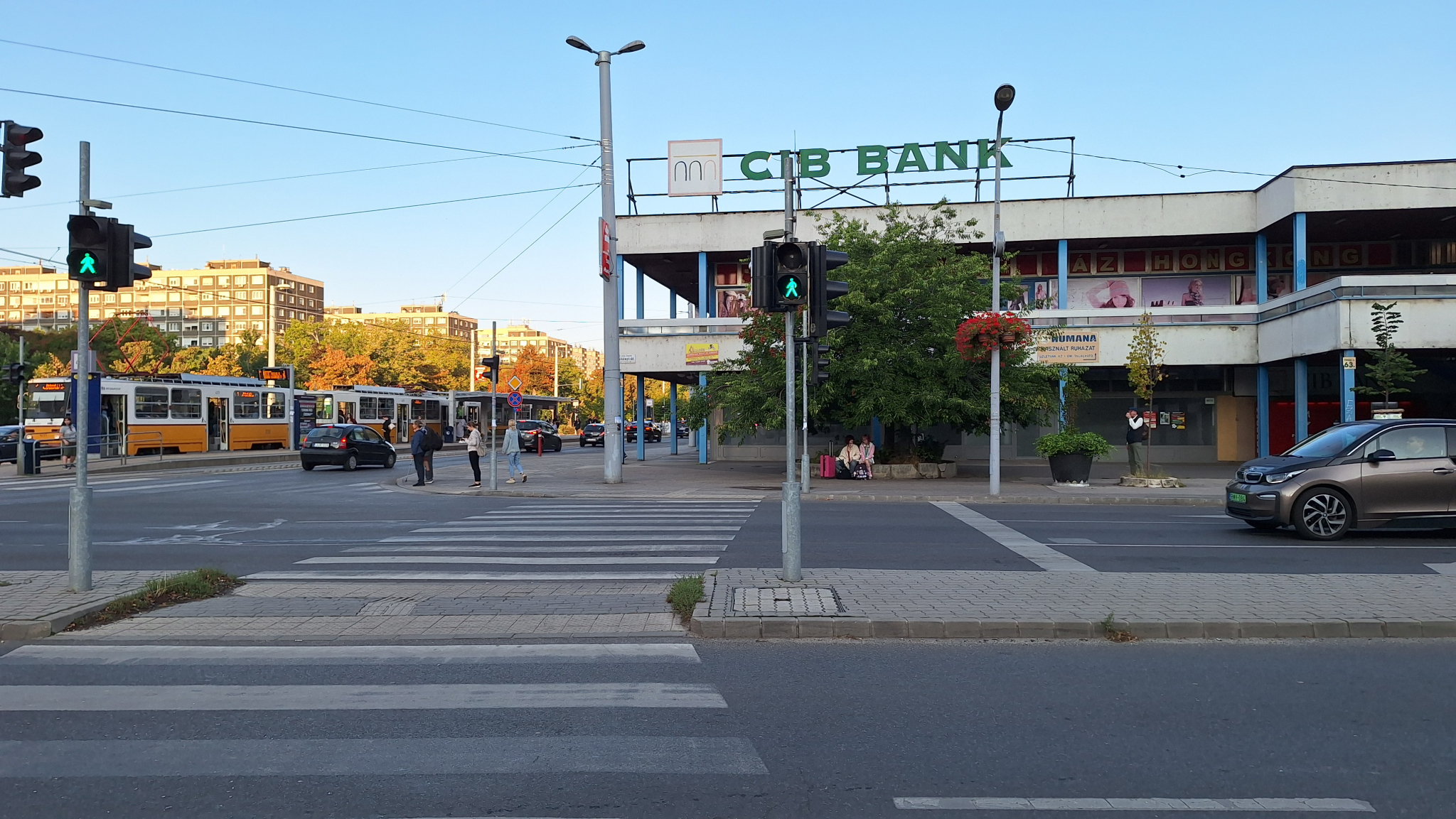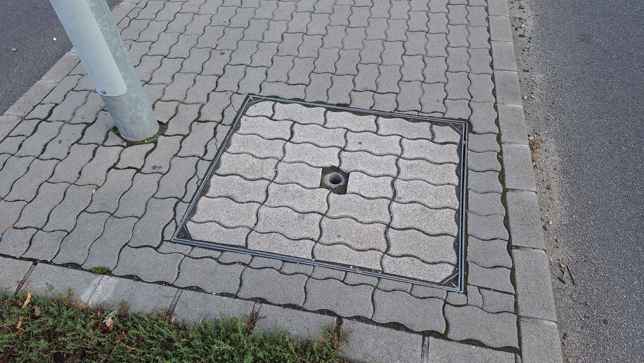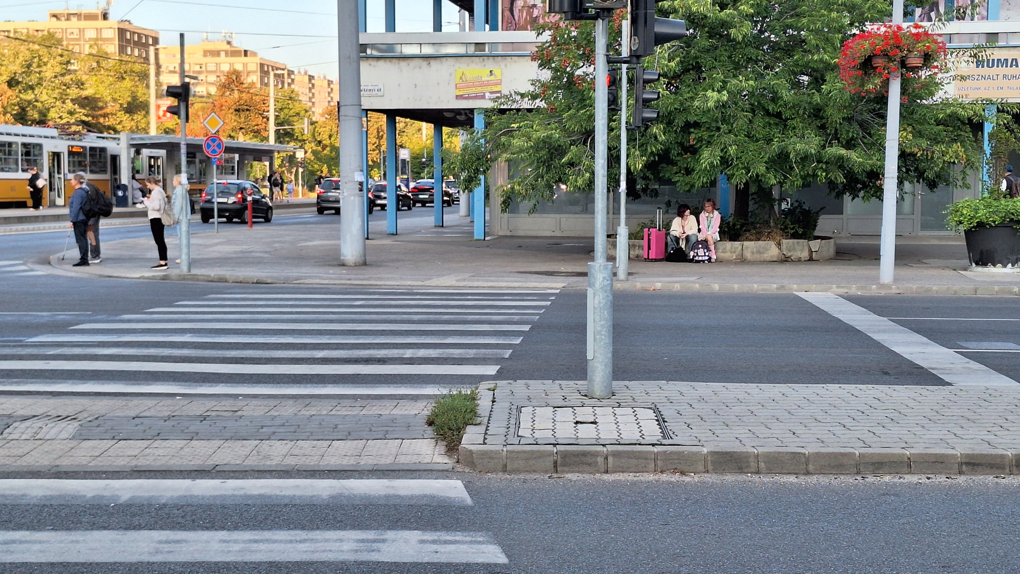 A Tétényi és Etele út kereszteződésénél az egyik zebra járdaszigetén van egy lyukas aknafedél.