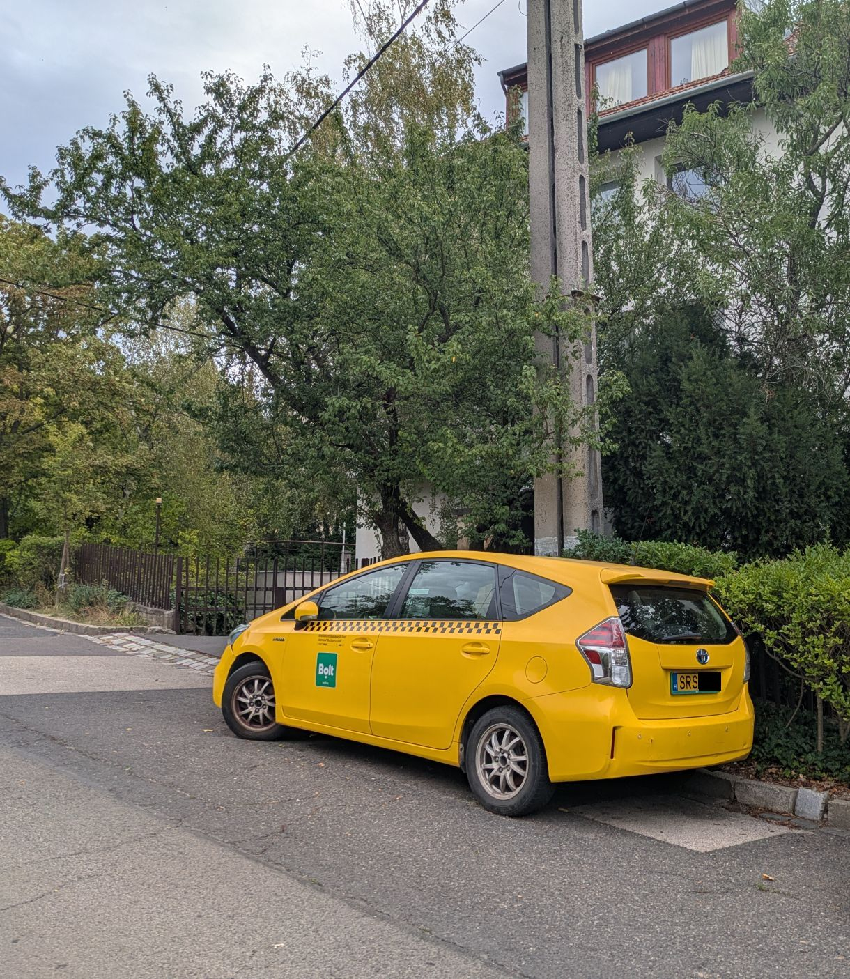 II. ker. Nagybányai út 71. előtt hetek óta áll egy sárga Toyota taxi lejárt műszakival.