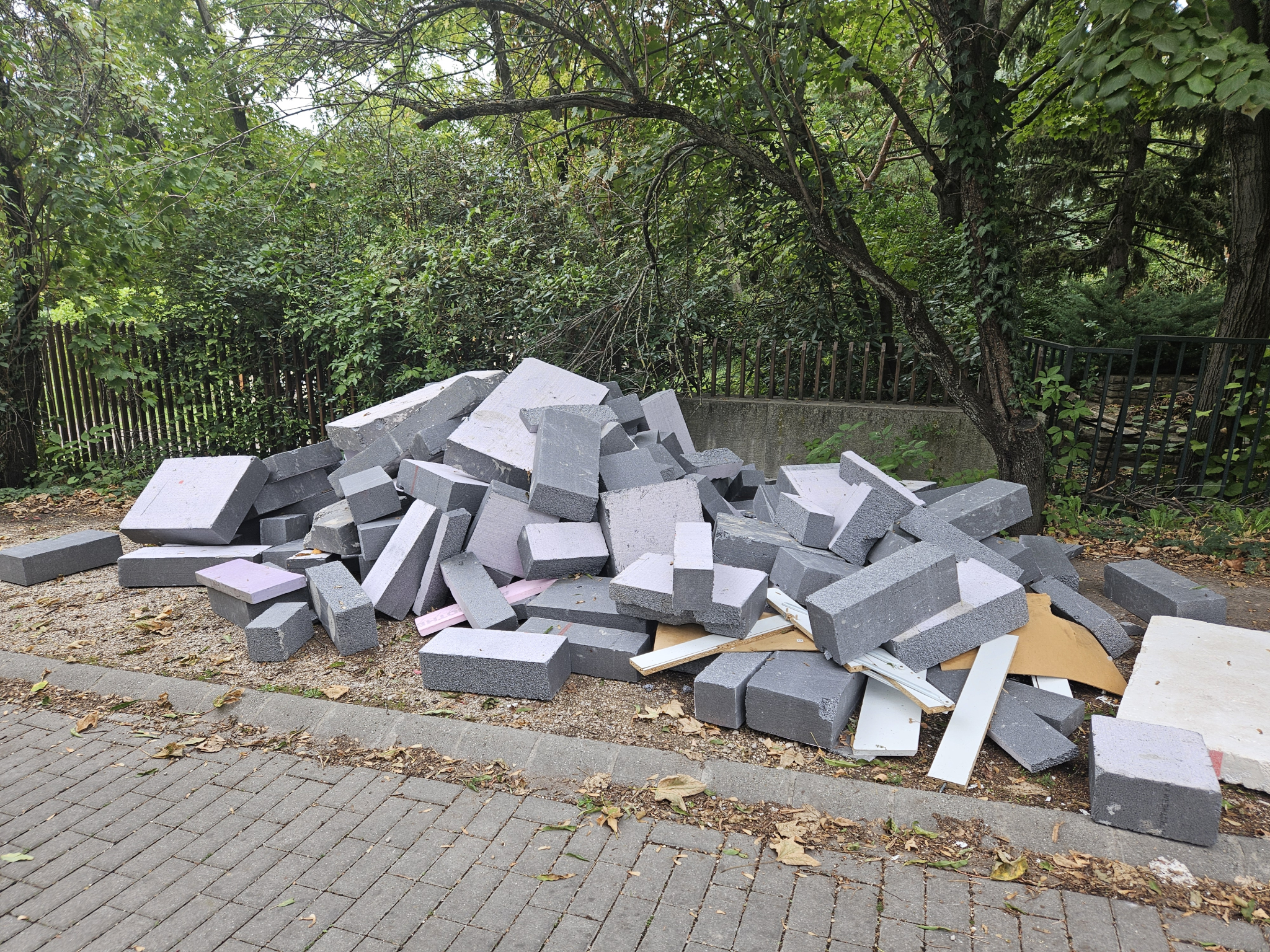 Valaki jelentős mennyisègű szigetelőanyagot deponàlt a Komló Juci közben a fűre.
