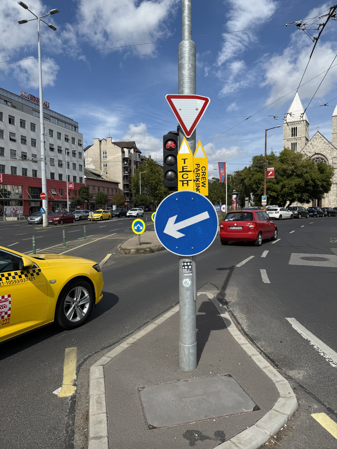 A városban több helyen találkozni hasonlóval, pedig tudomásom szerint szabálysértés is hozzányúlni a forgalomirányító eszközökhöz és táblára, oszlopra sem lehet rögzíteni, rakni semmit. Ezt is el kellene távolítani. Nem első alkalommal fordul elő, tehát rendszeres. Tenni kellene ellene valamit.