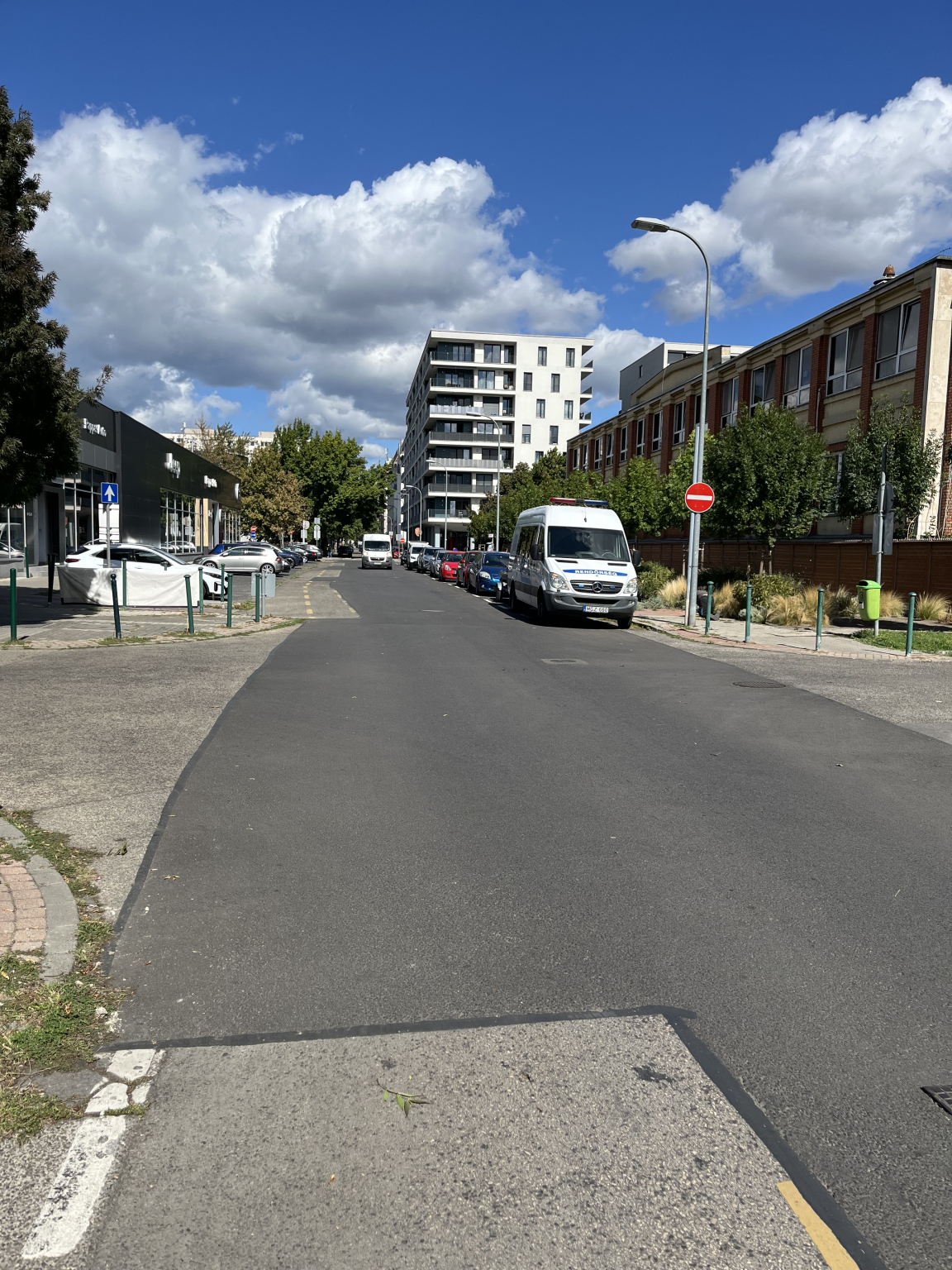 A Pannónia utcában a Bessenyei és Garam utca környékén tavaly aszfaltoztak, és nem pótolták a kerékpársávot.